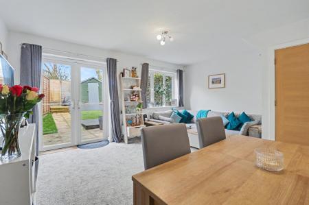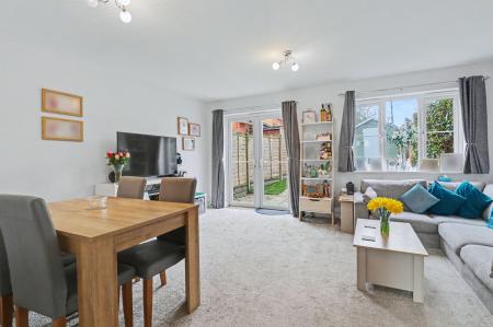 The bright and spacious lounge/diner has a storage cupboard, a window to the rear and French doors opening out to the garden.