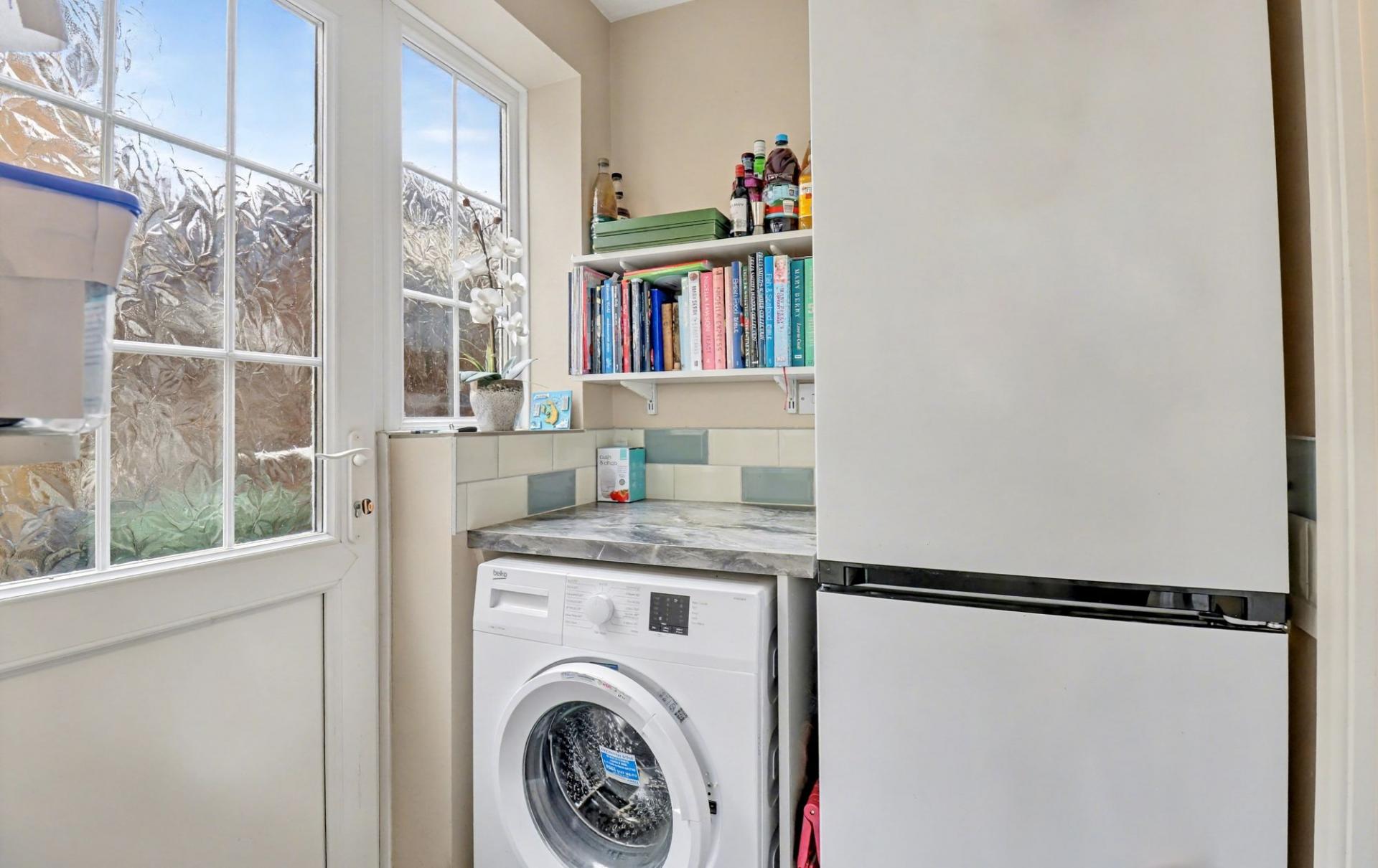 The adjoining kitchen has been fitted with a modern range of wall and base units with space for a free-standing cooker with extractor over and has a window to the rear. An opening leads through to the utility room which has a door to the side, space for a free-standing fridge/freezer and washing machine, as well as a door to the WC.