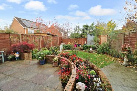 Gated access to both sides lead round to the attractive rear garden which enjoys a south easterly aspect and has a paved seating area, leaving the remainder of the garden laid to lawn with well-stocked flower and shrub borders.