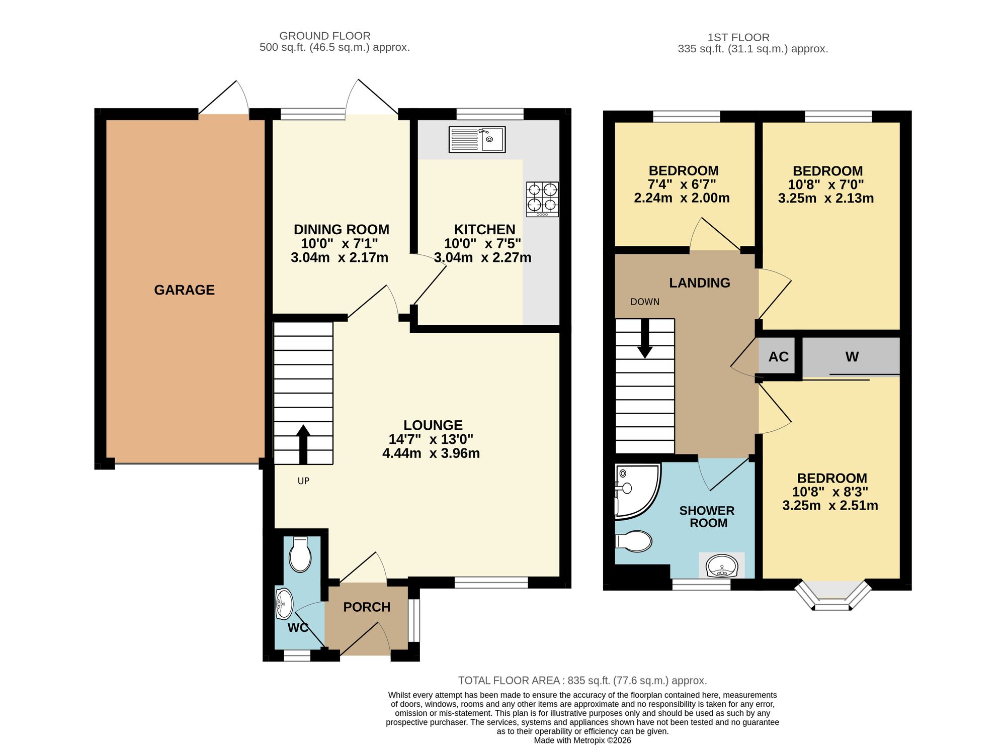 The accommodation on the ground floor comprises a spacious lounge, separate dining room, kitchen and a WC. On the first floor, there are three bedrooms and a shower room.