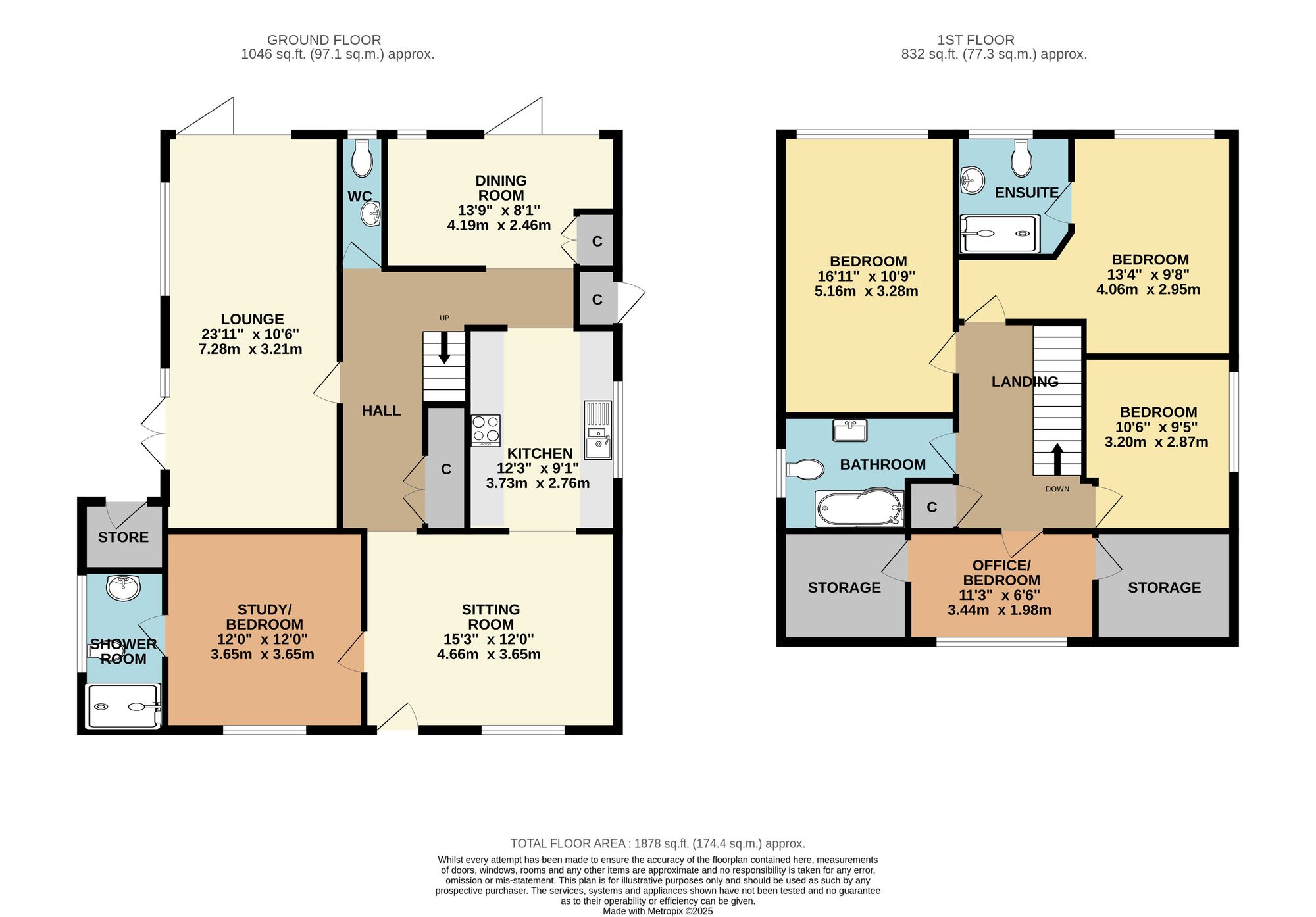 The modern cloakroom has a window to the rear, whilst the ground floor bedroom/study overlooks the front and has a beautifully appointed en-suite shower room with a window to the side.
