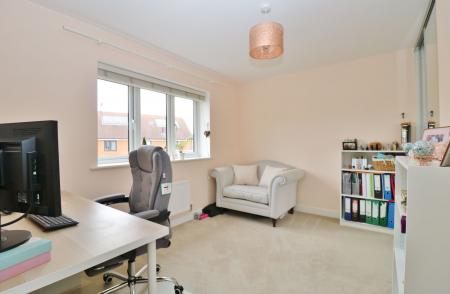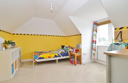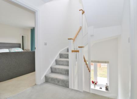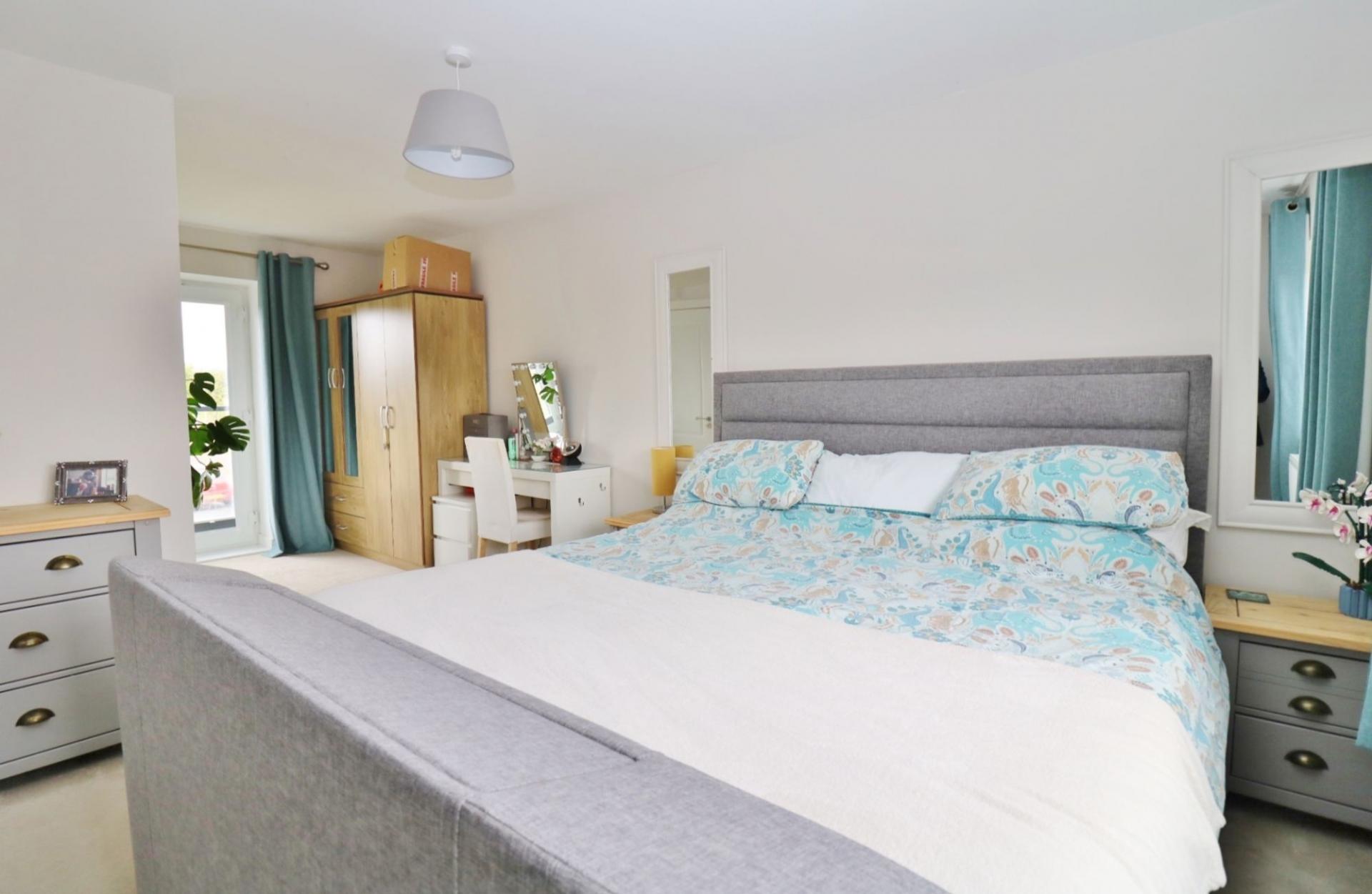 On the first floor, the large, light and airy master bedroom enjoys a dual aspect with a Juliet balcony overlooking the green to the front . The modern en-suite offers a shower cubicle, wash hand basin and WC.