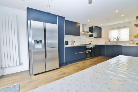 The modern kitchen/diner has been fitted with a stylish range of wall and base units with a Range style cooker (included) with extractor over, an integrated dishwasher, wine cooler and appliance space for an American style fridge/freezer. There is a window to the front and French doors from the dining area leading out to the garden.