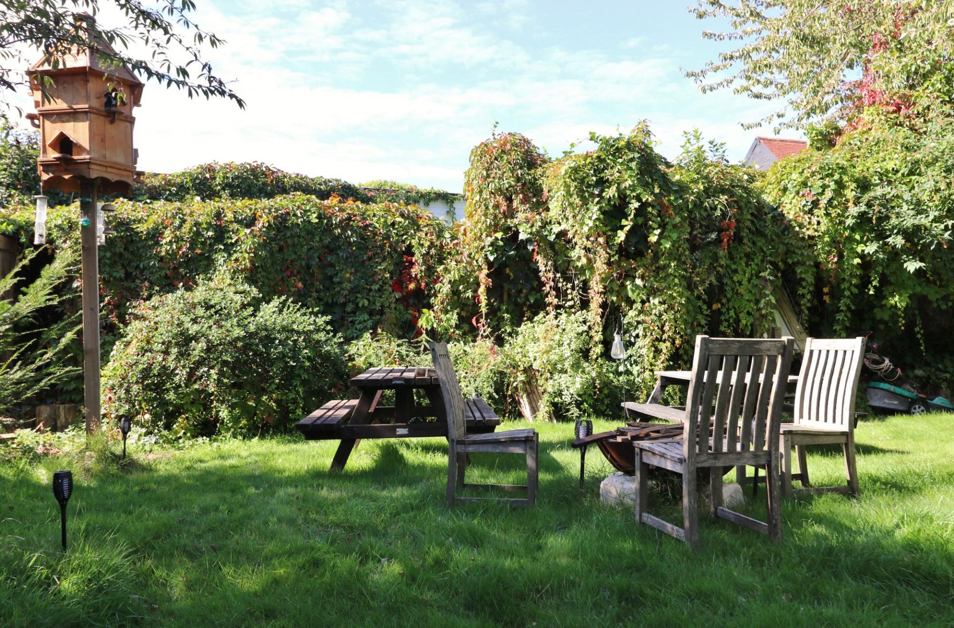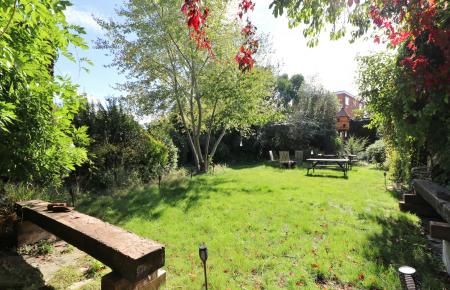 The attractive, rear garden enjoys a southerly aspect and has a paved seating area, centred around a well, leaving the rest of the garden mainly laid to lawn with mature borders.