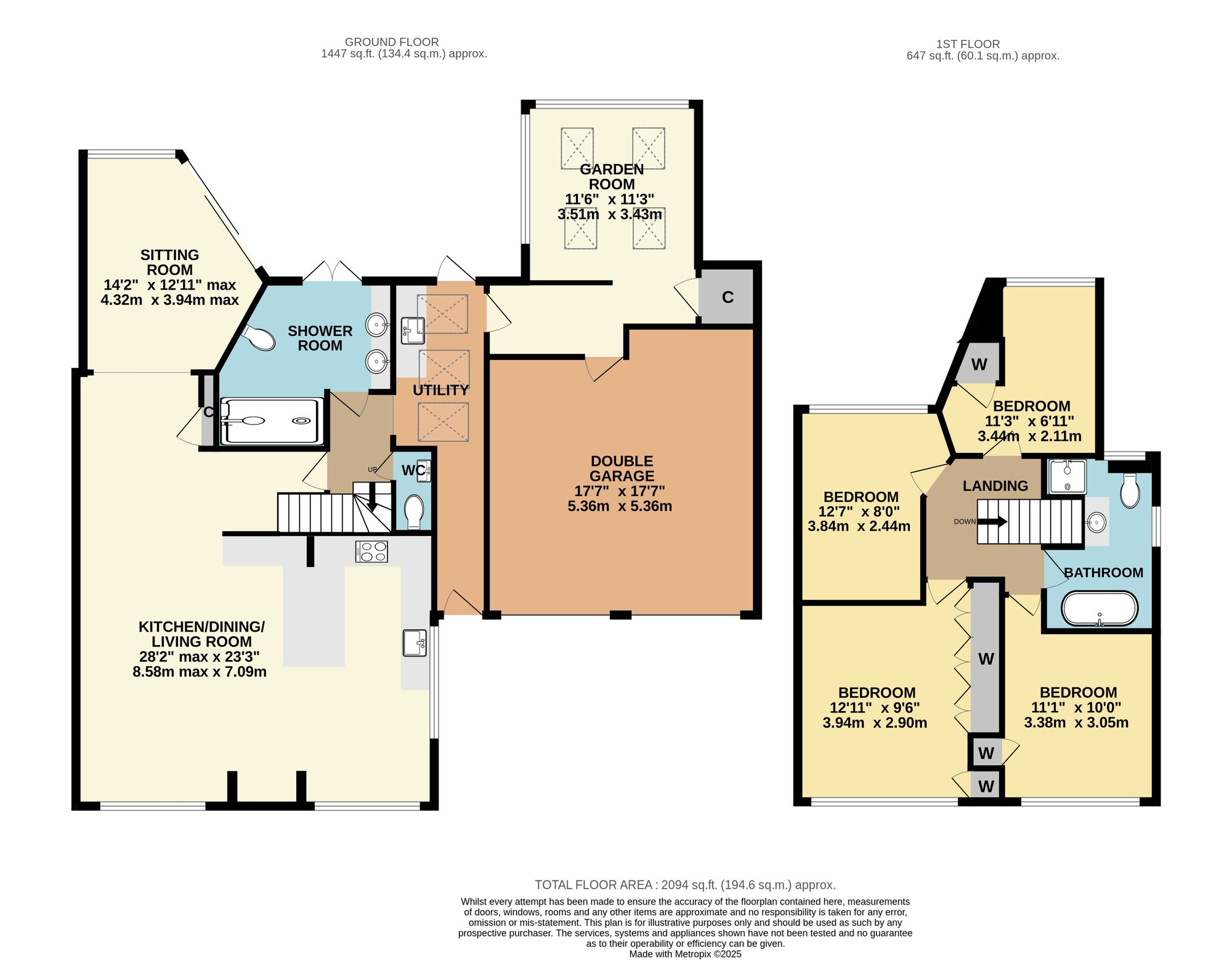 The accommodation on the ground floor comprises a spacious, open plan kitchen/dining/living room, a sitting room, wonderful garden room, utility, modern shower room and a WC.