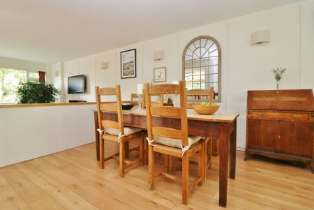 The spacious dining area flows through to the sitting room which has a window and patio doors leading out to the rear garden, whilst the beautiful garden room extension has windows to the side and rear and a vaulted ceiling with skylight windows.