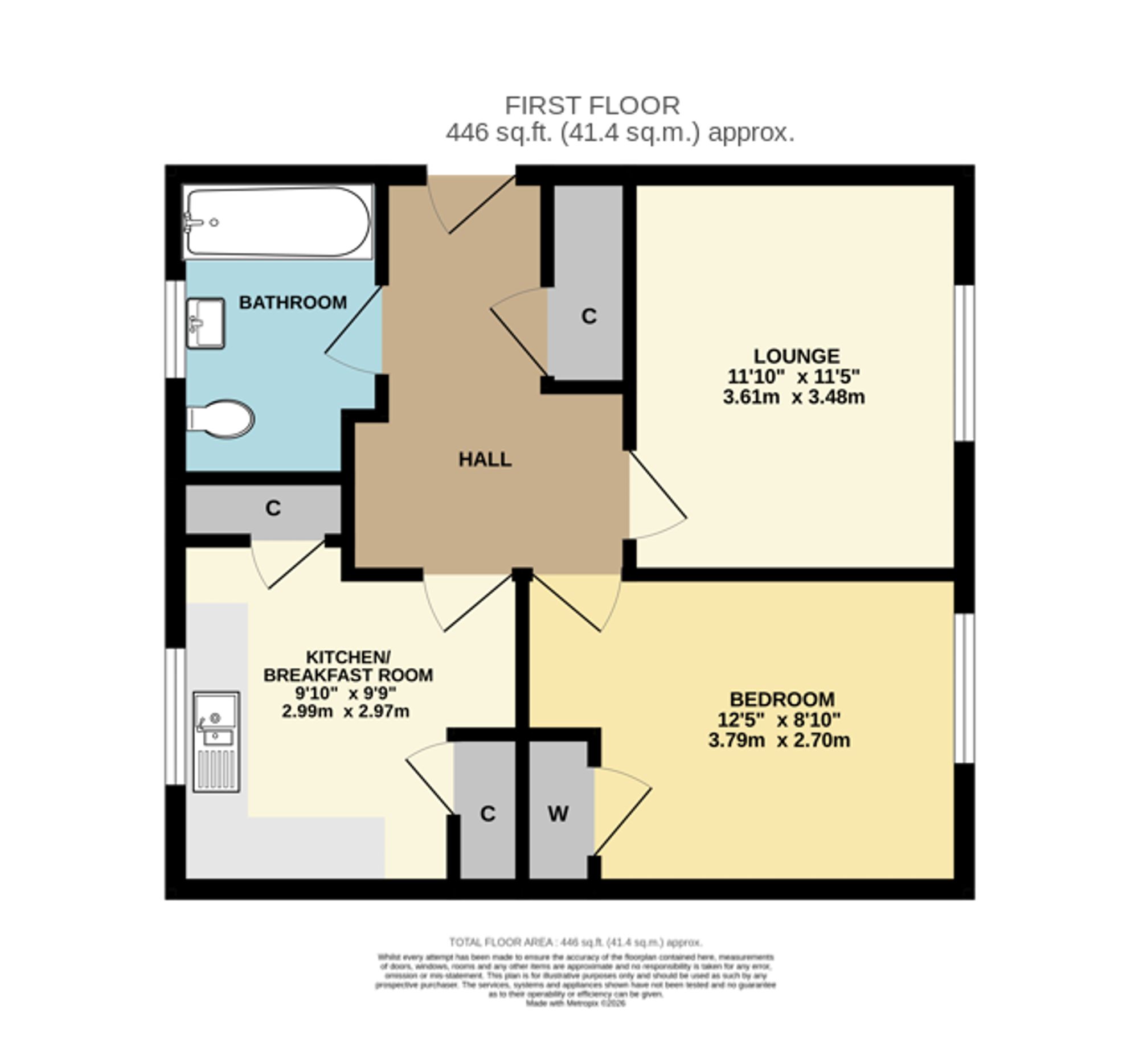 A communal entrance door leads to a lobby with stairs to the first floor landing, where a private front door opens into the hallway which has a built-in storage cupboard and doors to all rooms.