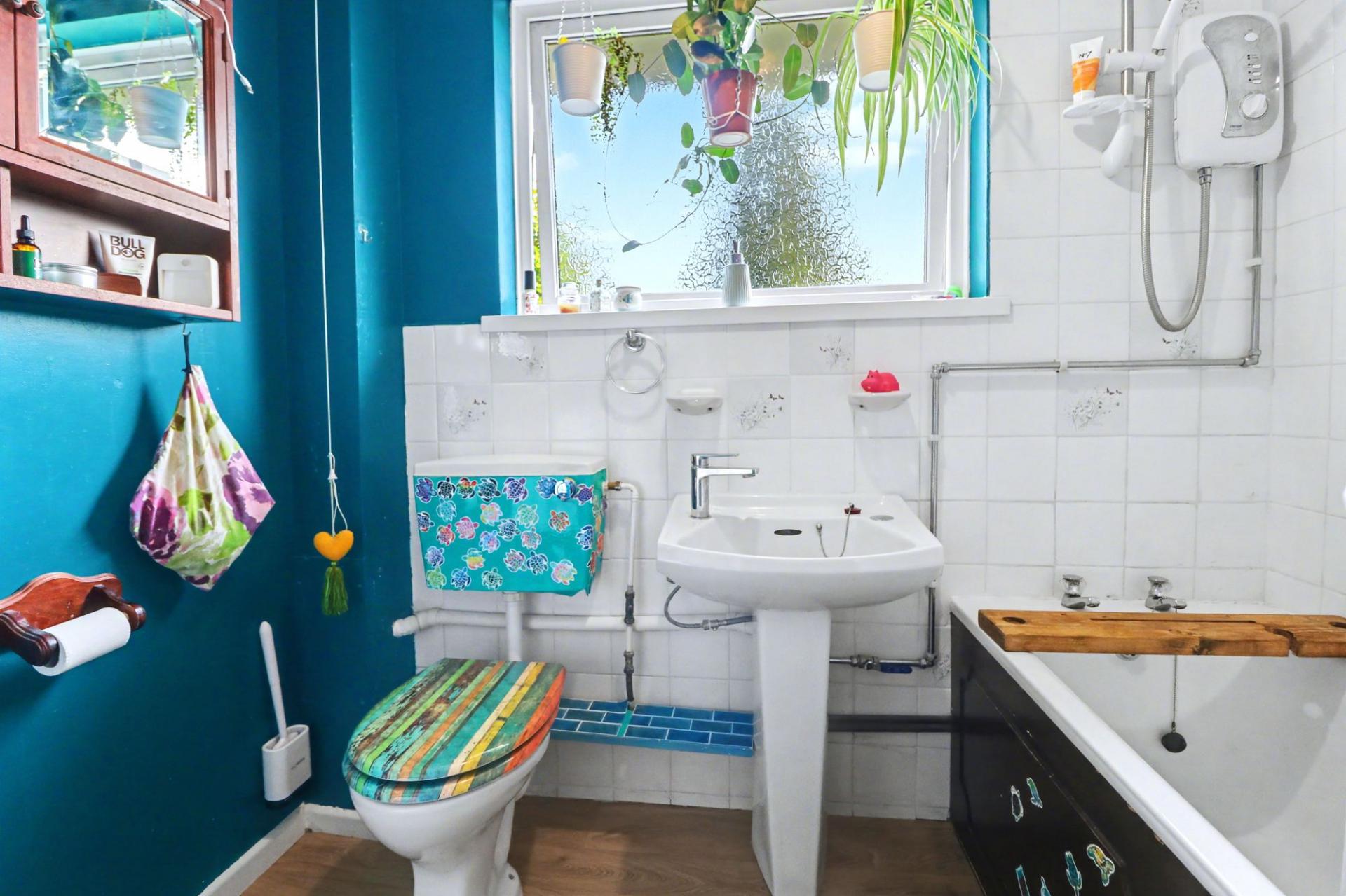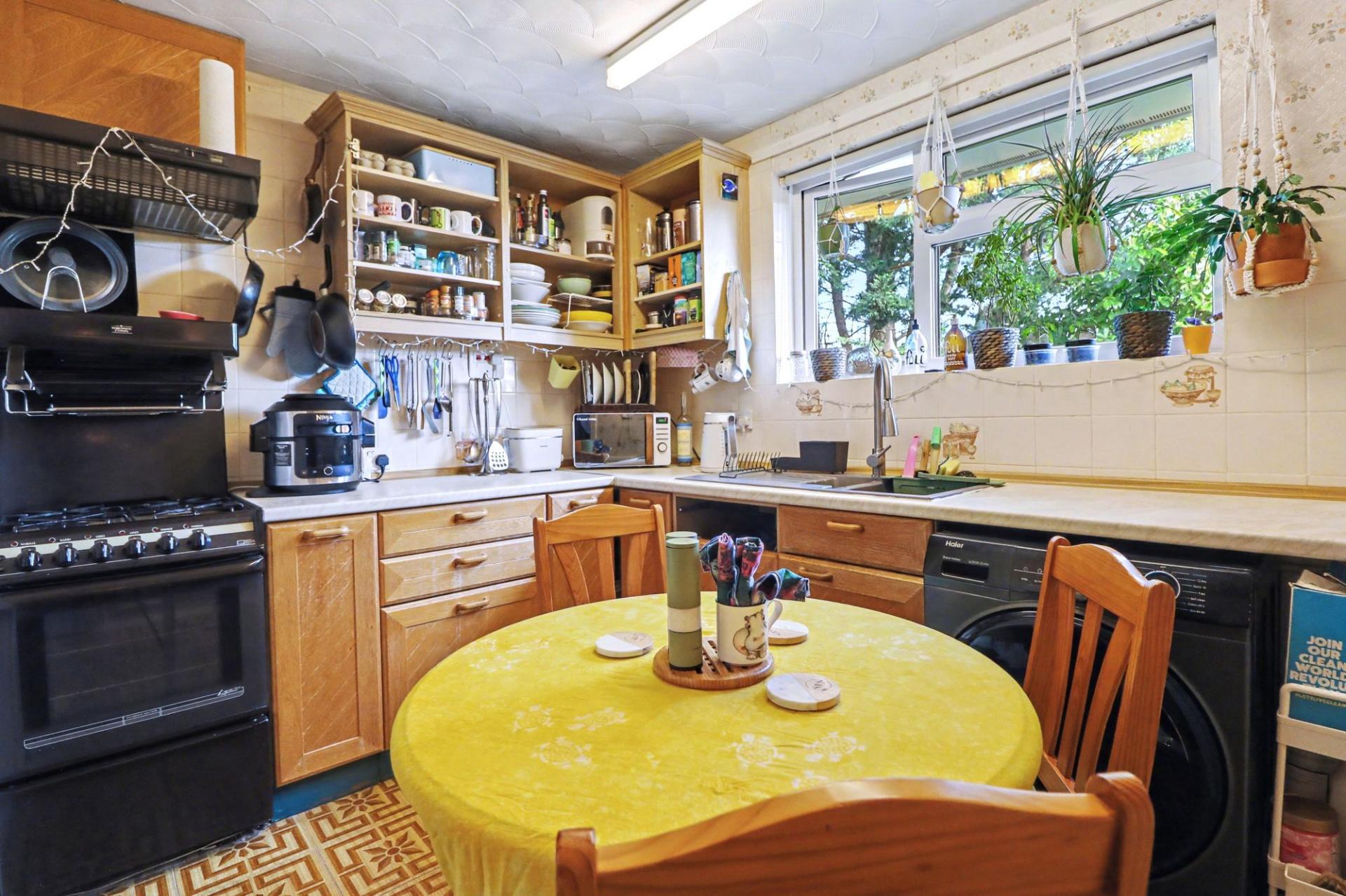The well-proportioned lounge is a bright room with a window to the front, whilst the kitchen/breakfast room faces the rear and has been fitted with a range of wall and base units. There is a pantry to one side, an airing cupboard, a free-standing cooker and space for a fridge/freezer and washer dryer.