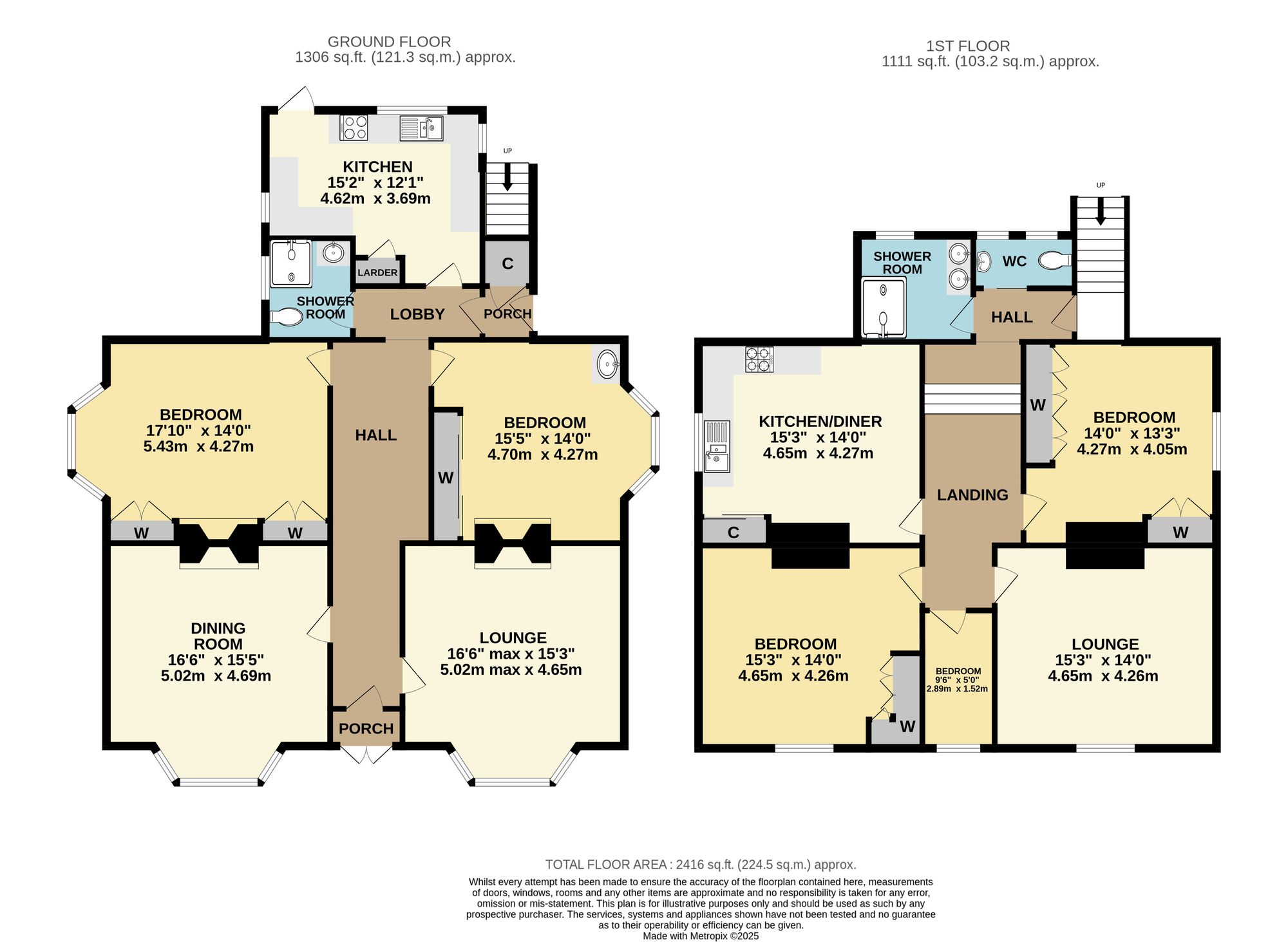 The lounge and dining rooms are both generous sized rooms, enjoying bay windows to the front and feature fireplaces.