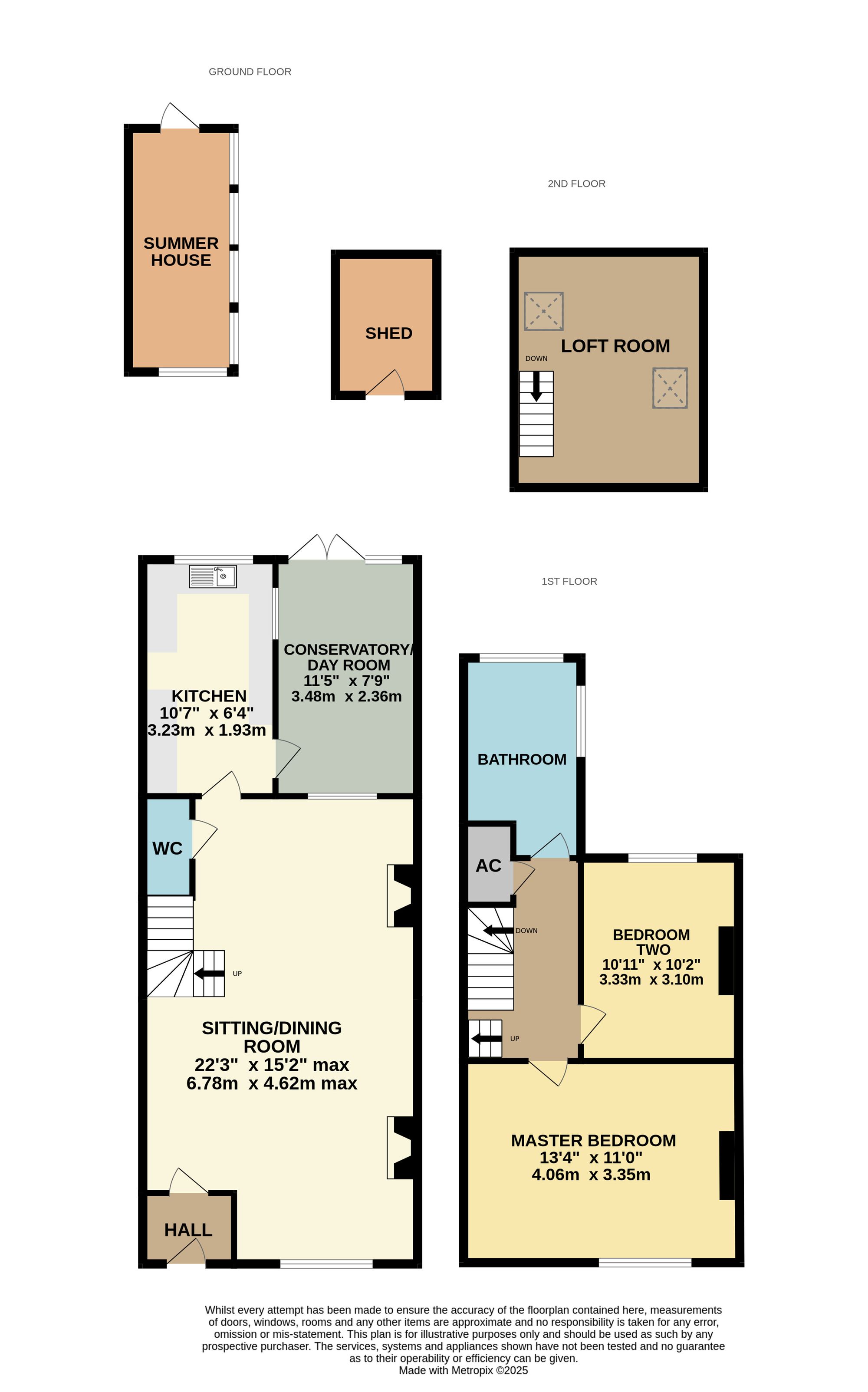 On the first floor there are then two double bedrooms and a bathroom complete with bath and separate shower cubicle. An additional benefit is then the loft room, which is accessed via a pull-down ladder/staircase, which is a lovely bright room with Velux windows that also overlook the green opposite and water. To the rear there is a mature garden with a private patio, summer house and a shed/workshop.