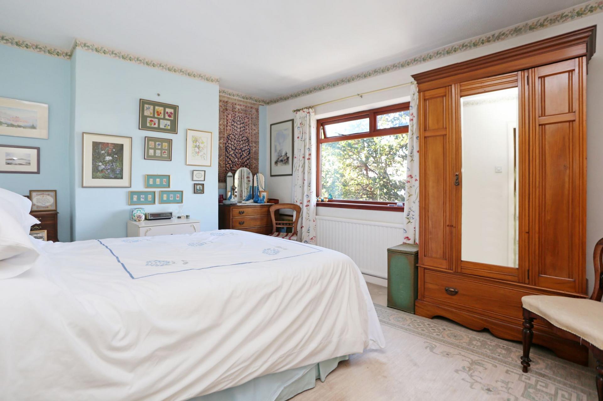 On the ground floor there is an entrance hall which takes you through to a well-proportioned sitting room, complete with open fire and picture window which encapsulates the wonderful view. The room then opens out into a spacious dining area from which doors lead through to a cloakroom, the kitchen which overlooks the garden and conservatory/day room.