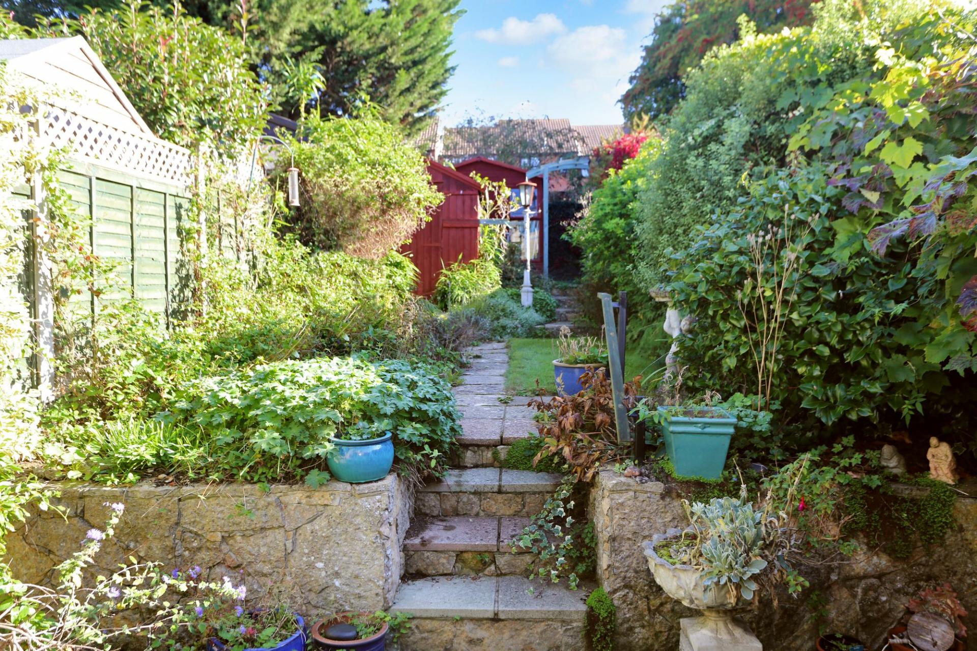 To the rear of the house there is an enclosed yet private patio area with steps up to the rest of the garden which is partly lawned with well-stocked flower, tree and shrubs borders. A pathway to the centre of the garden leads to a shed and summerhouse, with a gate at the end due to the property benefitting from rear pedestrian access. A true hidden gem set within this picturesque village.