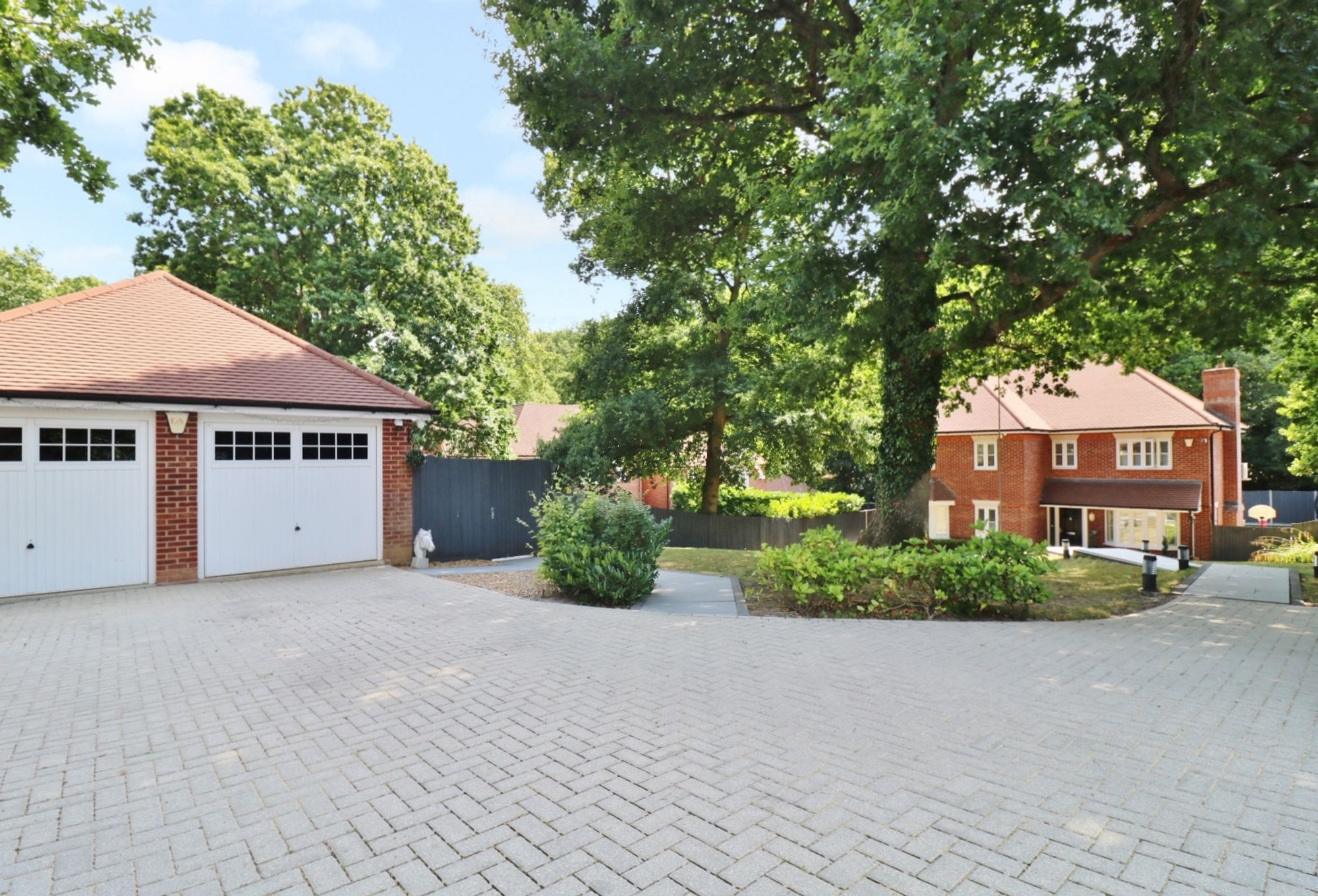 To the left hand side of the property there is driveway parking for four cars, which leads to the detached double garage.