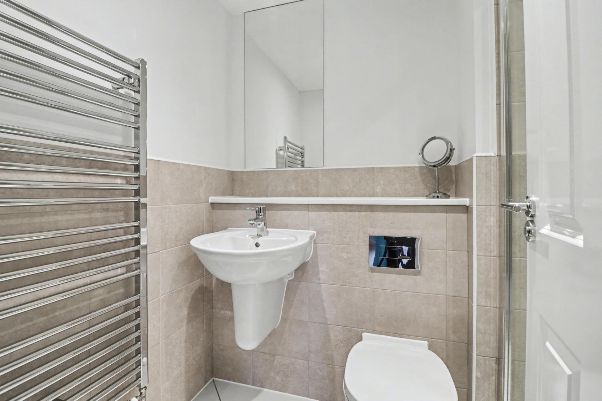 The utility/WC offers space and plumbing for a washing machine and has a built-in cupboard.