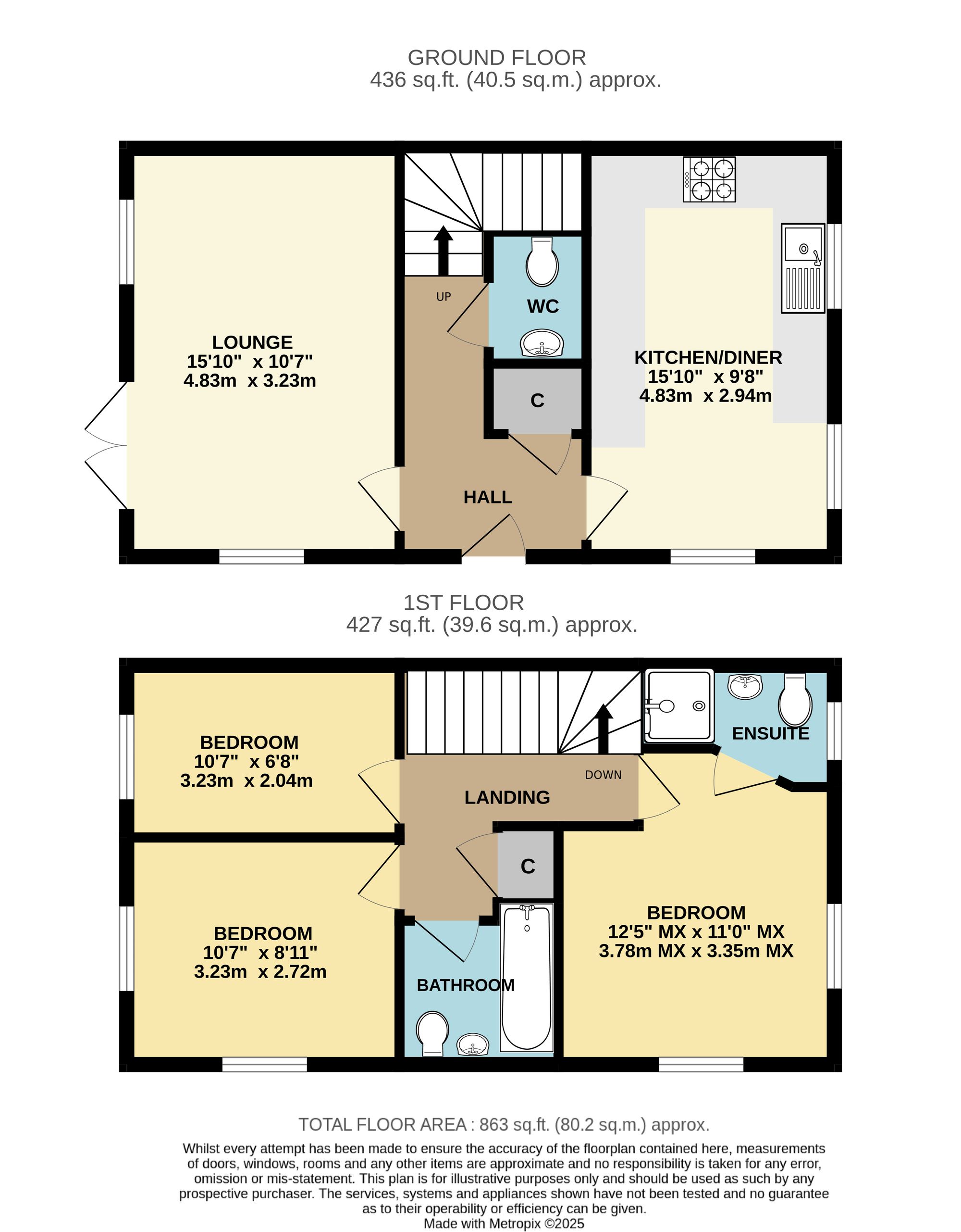 The accommodation on the ground floor comprises a modern kitchen/diner, spacious lounge with French doors to the rear garden, and a WC.