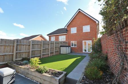 To the side of the property there is driveway parking for two cars, whilst the attractive, landscaped rear garden has a paved patio area, a section of artificial lawn and an additional seating area at the end.