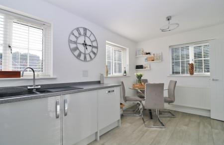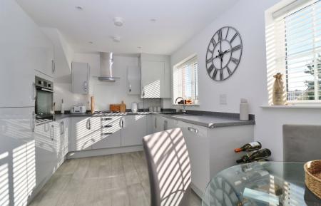 The wonderful, bright kitchen/diner has windows to the front and side and has been fitted with a modern range of wall and base units with a built-in oven and gas hob with extractor over and integrated appliances including a fridge/freezer, dishwasher and washing machine.