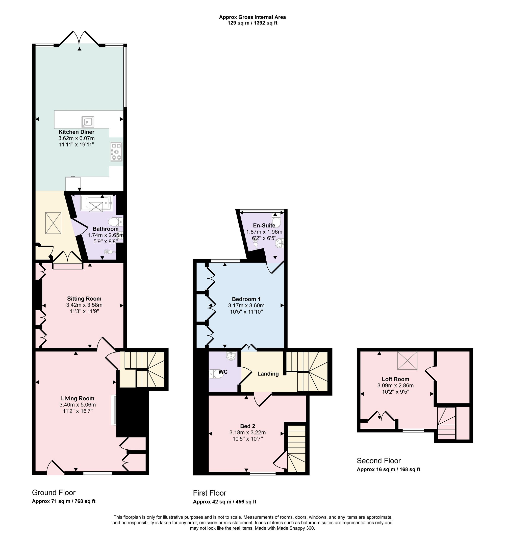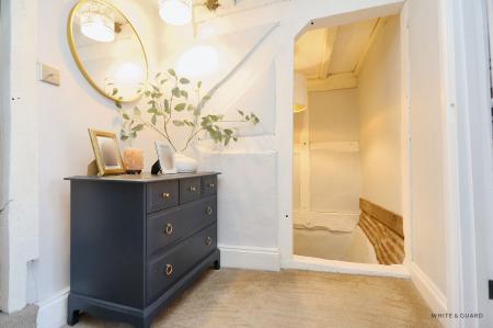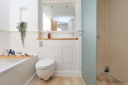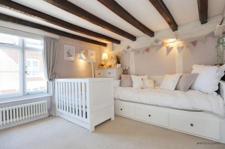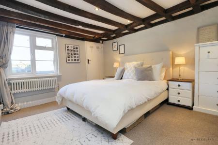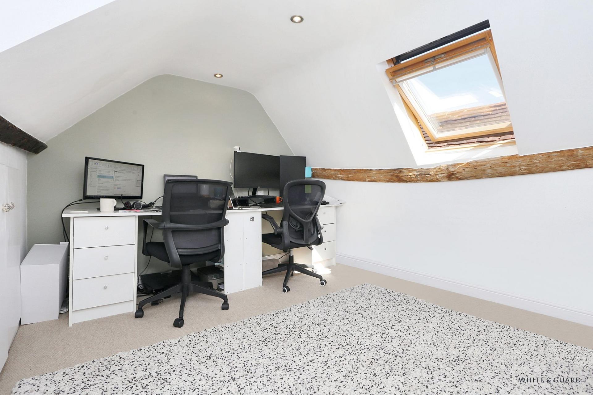 The first floor landing provides convenient access to a well presented cloakroom room, complete with a WC, stone countertop and surface mounted bowl sink. The master bedroom positioned at the rear of the house, is a well-proportioned double room with an excellent range of fitted wardrobes and has an exposed beamed ceiling. The adjacent en-suite has a double glazed window overlooking the garden and a suite which includes a walk in shower with ceiling mounted rainfall shower head, WC, wash hand basin and a feature tiled wall and flooring. Bedroom two, also a good size double room has a fitted storage cupboard, feature beamed ceiling and Victorian sash window to the front elevation. A flight of stairs found within bedroom two, lead to the top floor where an attic room can be found which is currently utilised as homeworking office and could also lend itself as a third bedroom / guest room.