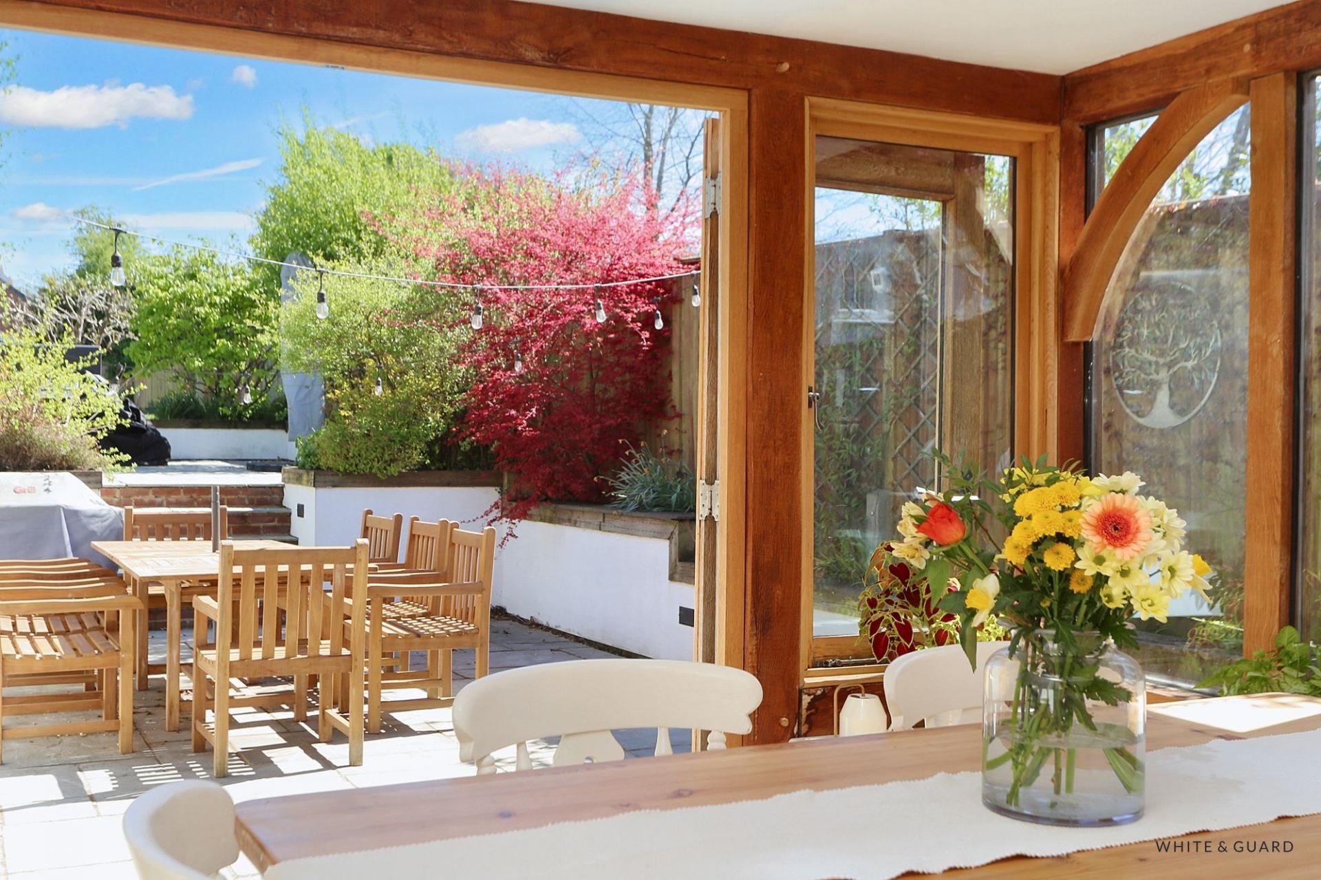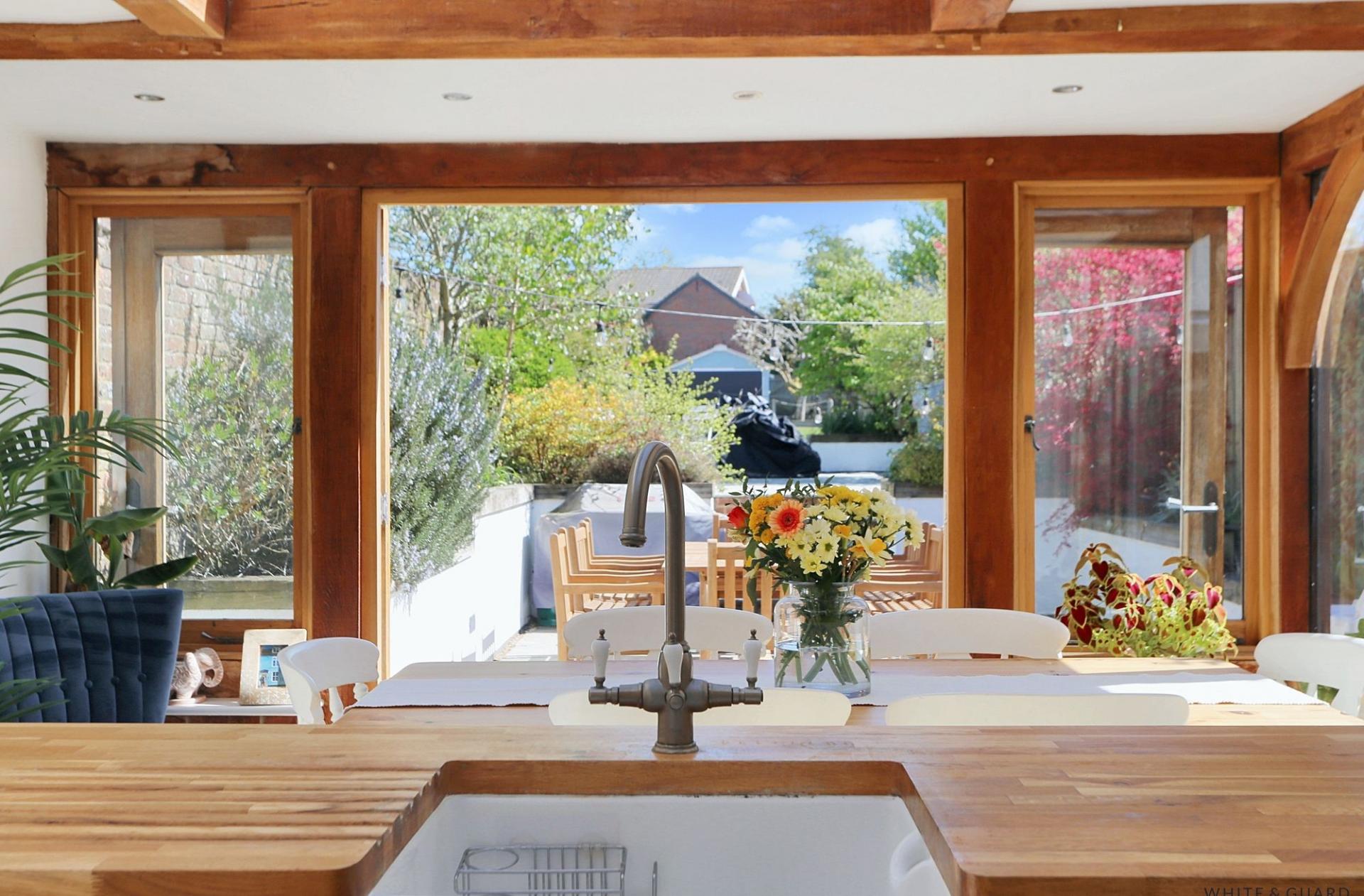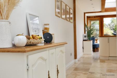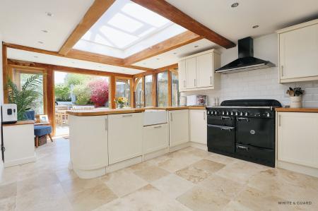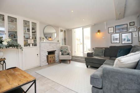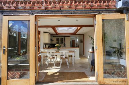 Upon entry into “Spring Cottage” you are greeted by an impressive 16ft7 living room with Victorian sash window to the front elevation and a wonderful open fire with brick surround and wooden mantle over. Providing the perfect blend of old and new, the room is laid to modern tiled flooring and has original exposed beams, while there is a bespoke fitted storage cupboard and doors leads to a flight of stairs and the sitting room. A well-appointed sitting room, also laid to tiled flooring has fitted dresser units to either side of chimney breast and double doors to the rear open into the extended ground floor accommodation. The inner hallway showcases a vaulted skylight, fitted storage cupboard and an internal oak door leads through to a four piece bathroom suite. The suite comprises a walk in mains shower with frosted glazed shower screen, a fitted bath, inset wash hand basin with fitted oak countertop, WC and heated towel rail. The room is finished with tiling to the principal areas, feature half panelled walls and a vaulted sky light. Sure to be the hub to this wonderful home is an open plan kitchen dining room with a feature sky lantern and exposed oak beams throughout. The kitchen itself, comprises a range of matching wall and base units with fitted oak worksurfaces over which incorporate an inset butler sink and provides space for a range cooker. Integrated appliances include a fridge freezer, dishwasher and washing machine. A dedicated dining area is found at the rear of the room and oak framed double doors open onto a courtyard style patio terrace perfect for alfresco dining.