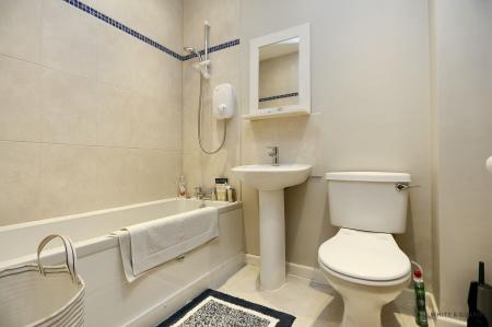Climb the stairs to the first floor, where a sense of comfort takes over. The lounge is a cosy retreat, filled with natural light that streams through its windows, making it an uplifting place to unwind at the end of a busy day. Alongside it sits the third bedroom, the smallest of the three, which could be a snug guest room, a study for home working, or even a hobby space. Its flexibility allows it to evolve with your lifestyle.