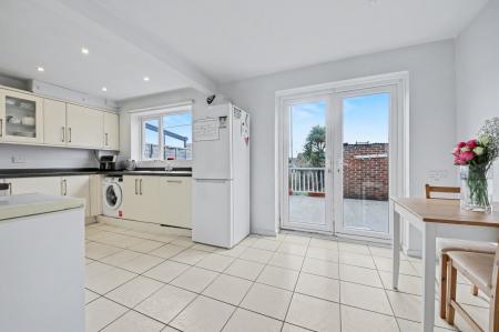 To the front of the house a dropped kerb provides vehicular access to a double driveway. The generous size rear garden has a decking terrace extending from the rear of the house and steps down to an area laid to lawn. A passageway between running between the adjoining neighbour provides convenient pedestrian access to the front of the property.