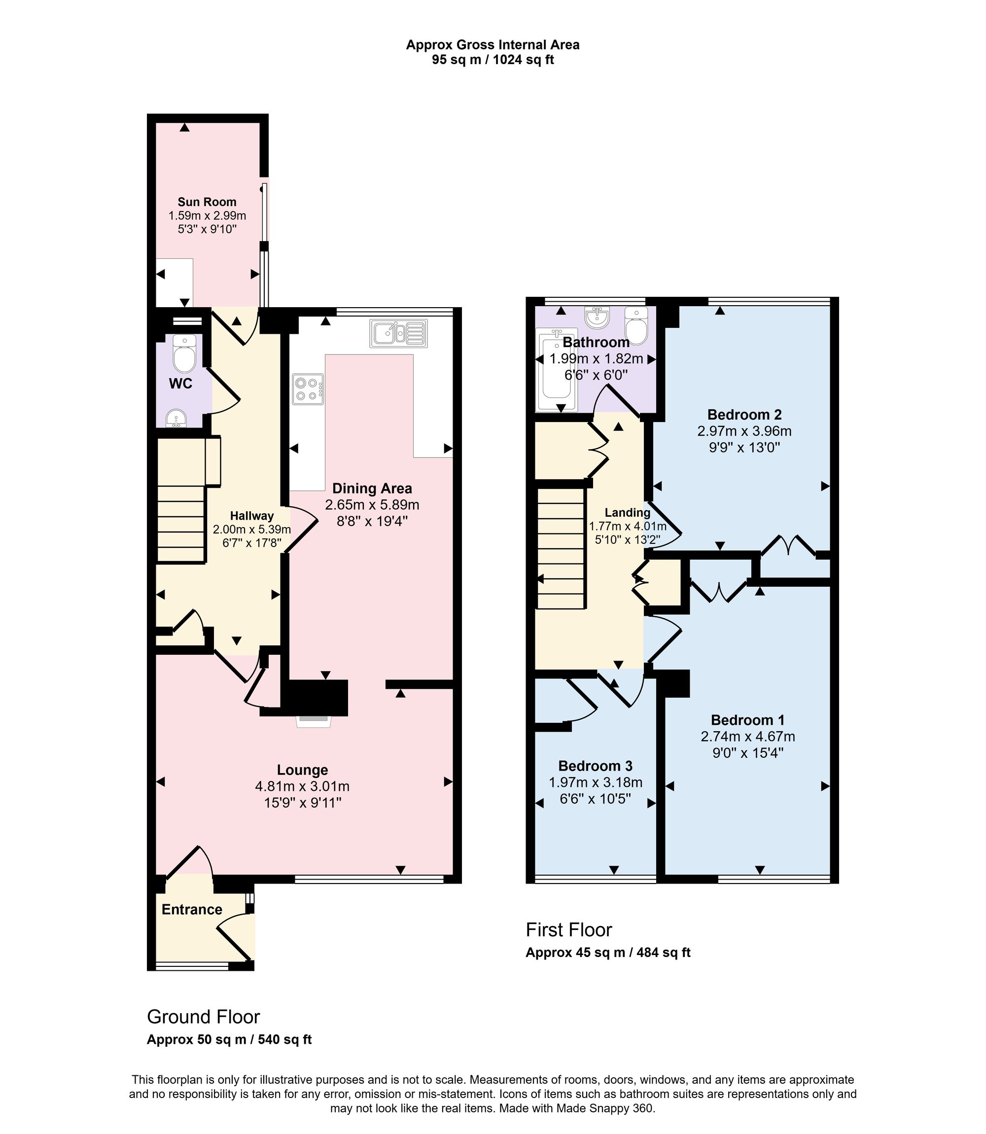 Upstairs, three well-proportioned bedrooms offer flexibility for growing families, home working or guest accommodation, all served by a family bathroom. To the rear of the property, a handy sun room provides additional storage while also offering potential as a hobby space or peaceful retreat.