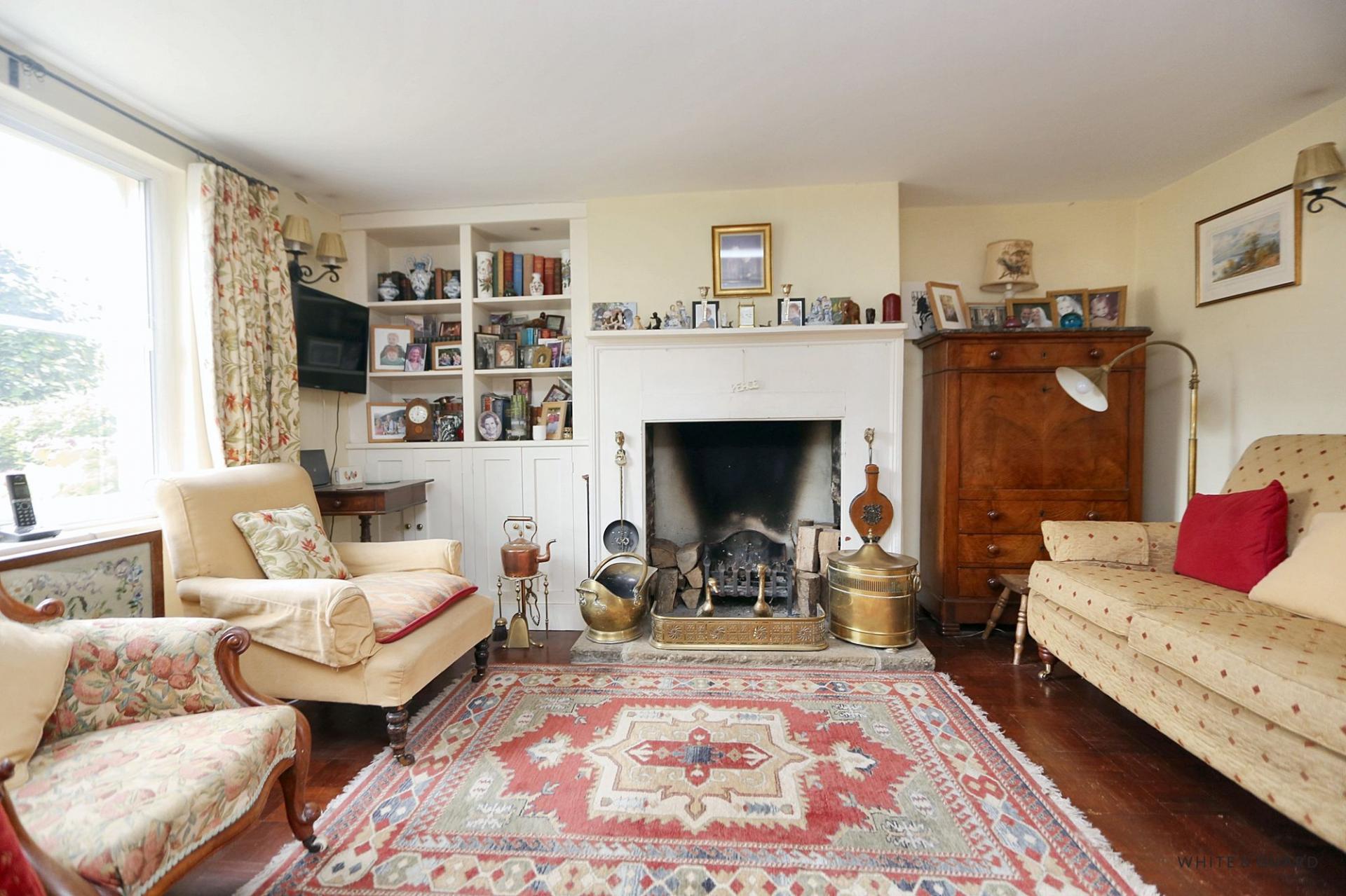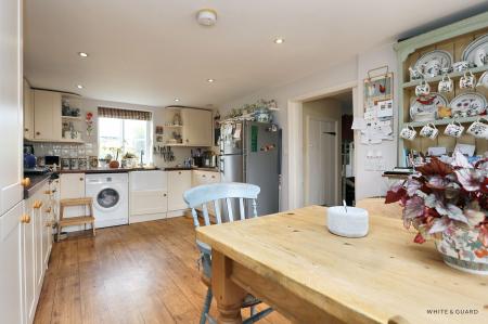 A front door opens to into the entrance porch which has stairs leading to the first floor and an opening leads through to the living room. Laid to wooden parquet flooring the cosy and characterful living room has a delightful open fire and a fitted dresser unit to one side of the chimney. Access is provided to the dining area and kitchen, the dining room itself is set at the rear of the house and provides a door to the which opens onto the rear garden. The expansive kitchen dining room extends to over 18ft and comprises a range of matching wall and base level units with solid wood countertops over which incorporate an inset butler sink and provide space for an Aga cooker. Furthermore, the kitchen provides space for a fridge freezer and space and plumbing for a washing machine, alongside a dining area at the rear. A door at onto the rear garden and a further door to one side provides pedestrian access into the garage and also houses a cloakroom WC.