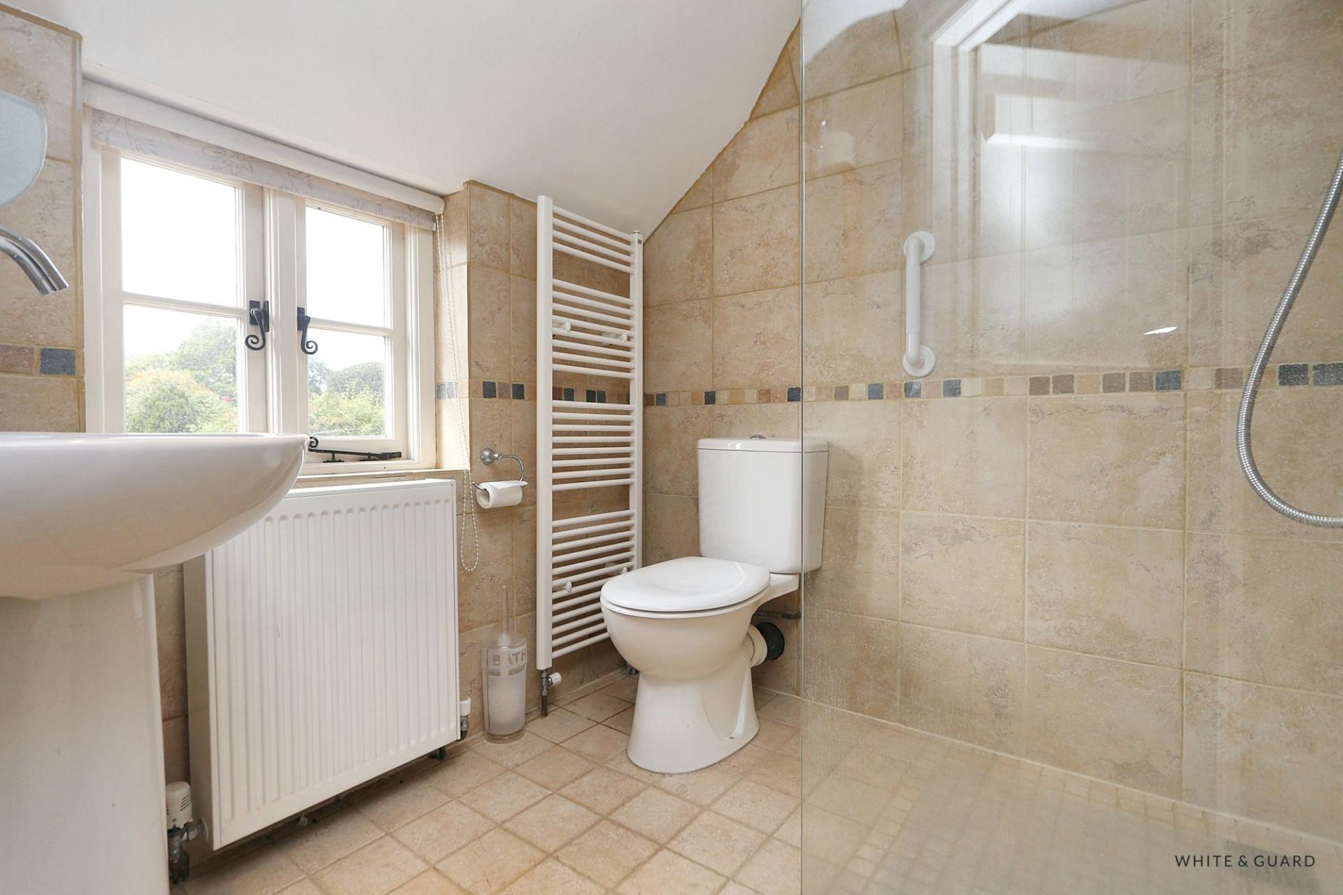 The first floor landing has access to the loft space and doors lead to the principal accommodation. The master bedroom is a well proportioned double room and features exposed wooden flooring, an ornate feature fire place and fitted wardrobes. The adjacent en-suite, also accessible from bedroom three comprises a panel enclosed bath, pedestal wash hand basin, WC, and heated towel rail. The second bedroom, also a good size double room, provides eaves storage space and further space for freestanding bedroom furniture. The well-appointed en-suite has a walk in shower with fitted glazed screen, WC, pedestal wash hand basin and heated towel rail. Completing the first floor is bedroom three, currently in use as a study the room is an ample sized single room which benefits from access to the en-suite bathroom.