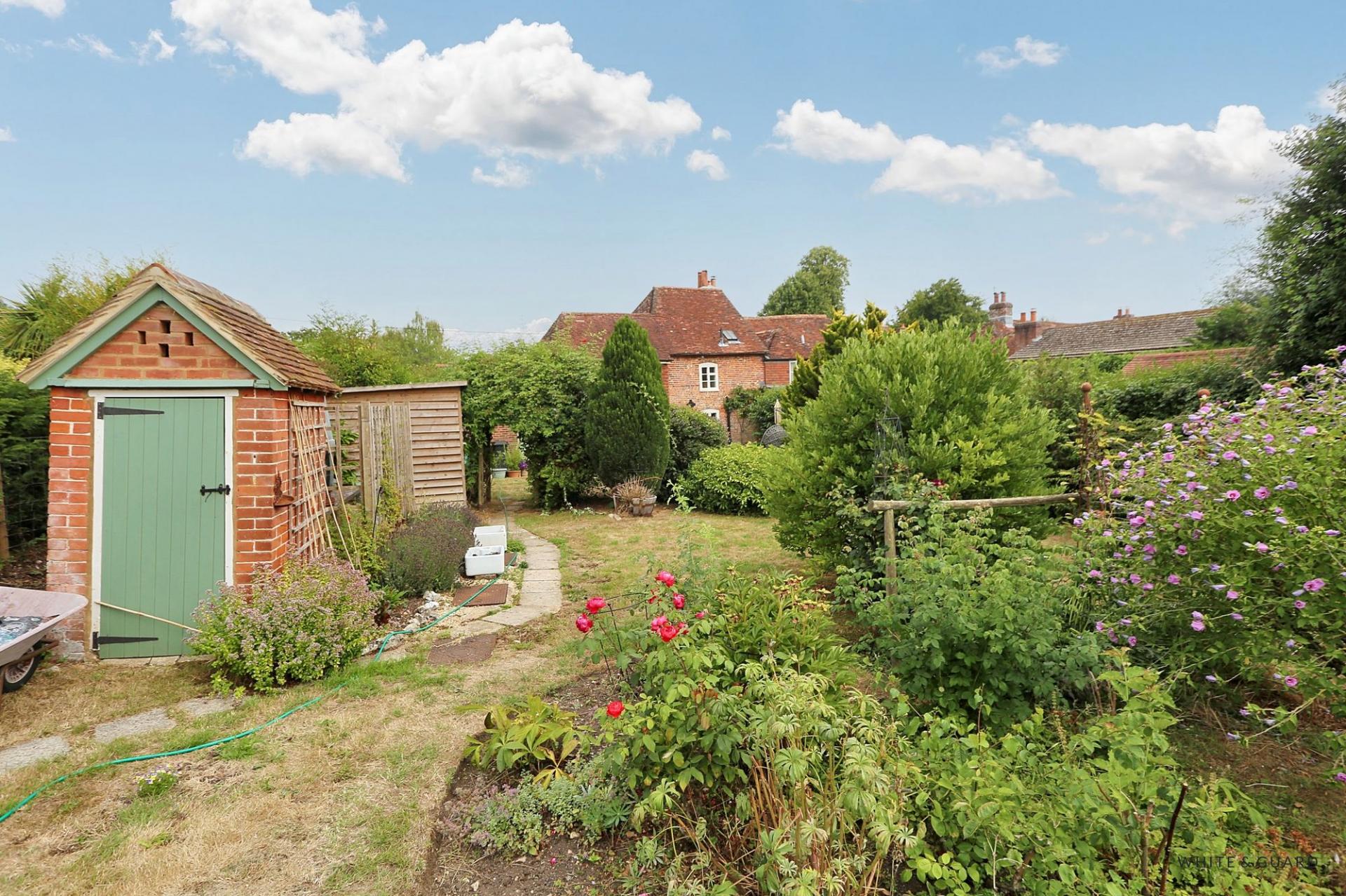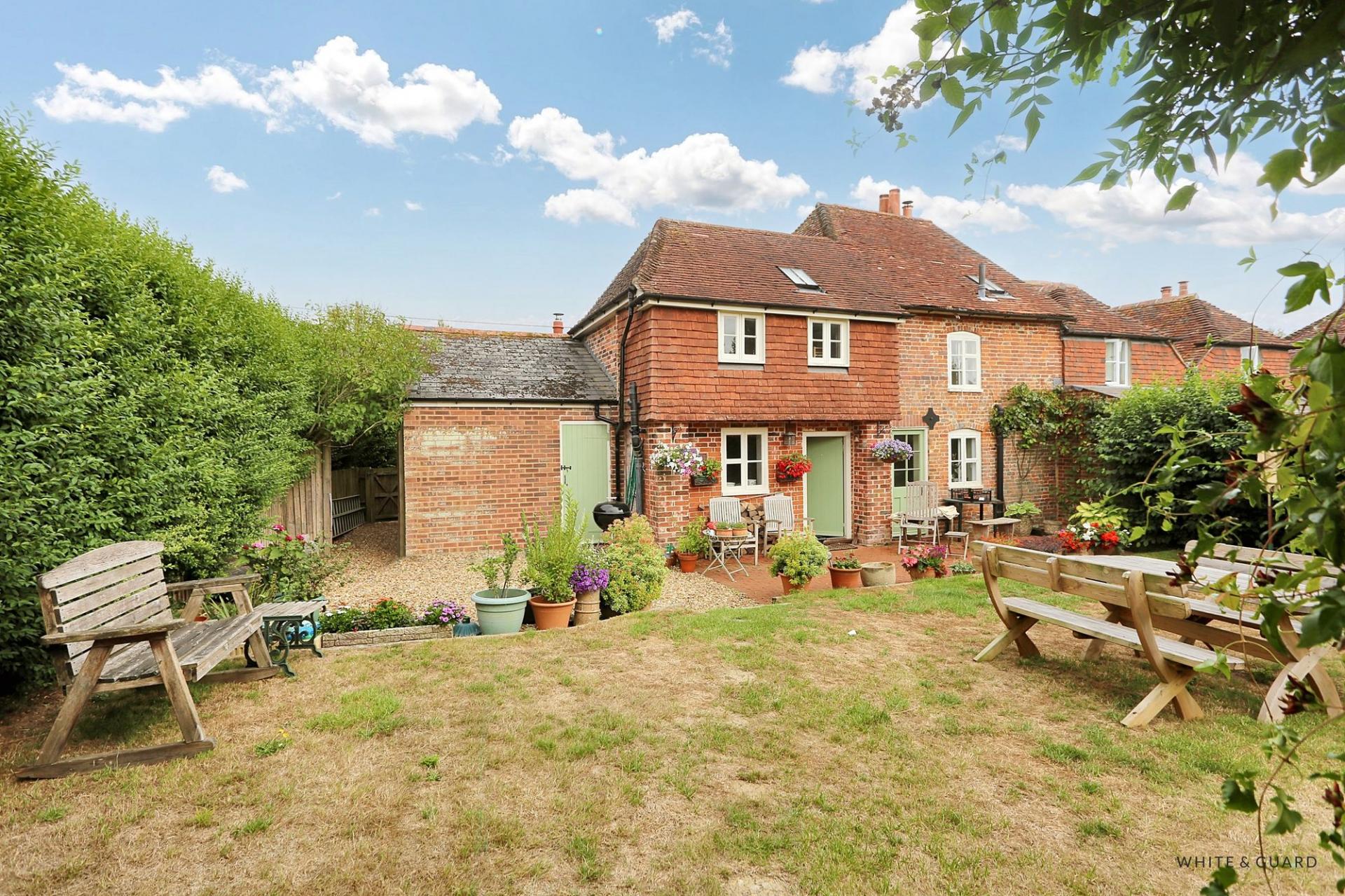 The front of the cottage exudes charm and appeal with exposed brick and flint walls, the well maintained front garden is enclosed via mature hedging. To one side of the front garden a shingled driveway provides vehicular access to the garage. The wonderful established rear garden is a brilliant size and offers a patio seating area which extends from the rear of the house and in turn leads to large lawned area with intersecting flower beds, mature hedging and trees.