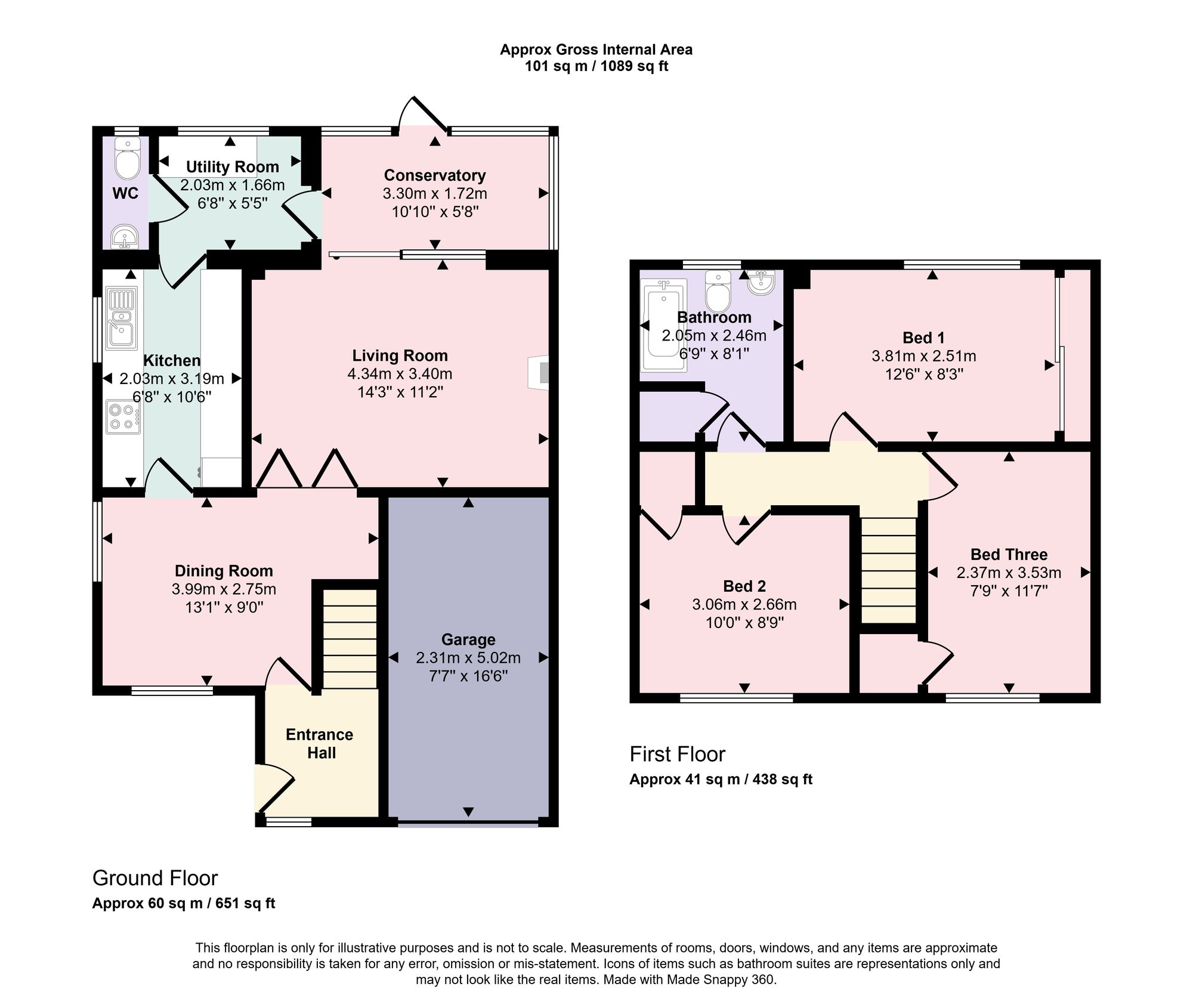 The first floor landing gives access to the loft space and doors lead to all rooms. The property offers three well sized double bedrooms which includes the master bedroom set at the rear of the house and benefits from fitted wardrobes. Bedrooms two and three also offer fitted storage and still allow space for freestanding bedroom furniture. The well appointed bathroom suite comprises a panel enclosed bath with shower over, an inset wash hand basin and WC, radiator to one wall and tiling to the principal areas.