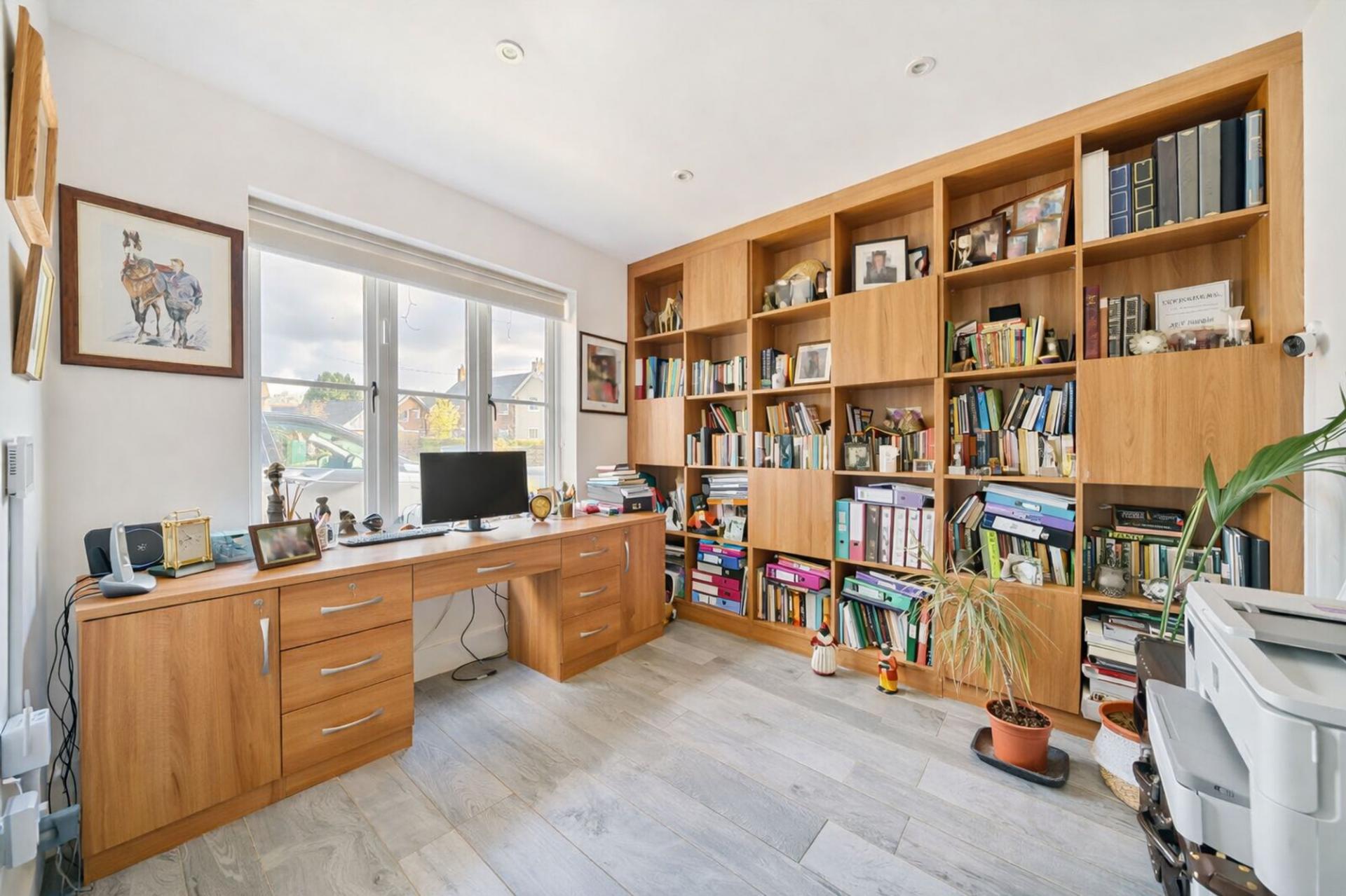 To the right, a stunning double-aspect lounge is bathed in natural light, a refined yet comfortable setting for both relaxed evenings and formal entertaining. A generous study offers the perfect work-from-home environment, while also providing flexibility as a potential sixth bedroom if required.