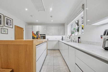 Spanning the full width of the rear of the property is the true heart of the home; a magnificent open-plan kitchen and dining space designed for modern family life. Beautifully finished and thoughtfully laid out, this space invites everything from relaxed family breakfasts to lively dinner parties. A walk-in pantry enhances both convenience and storage, while underfloor heating throughout the entire ground floor ensures year-round comfort. Contemporary fixtures and fittings further elevate the home’s luxurious feel.
