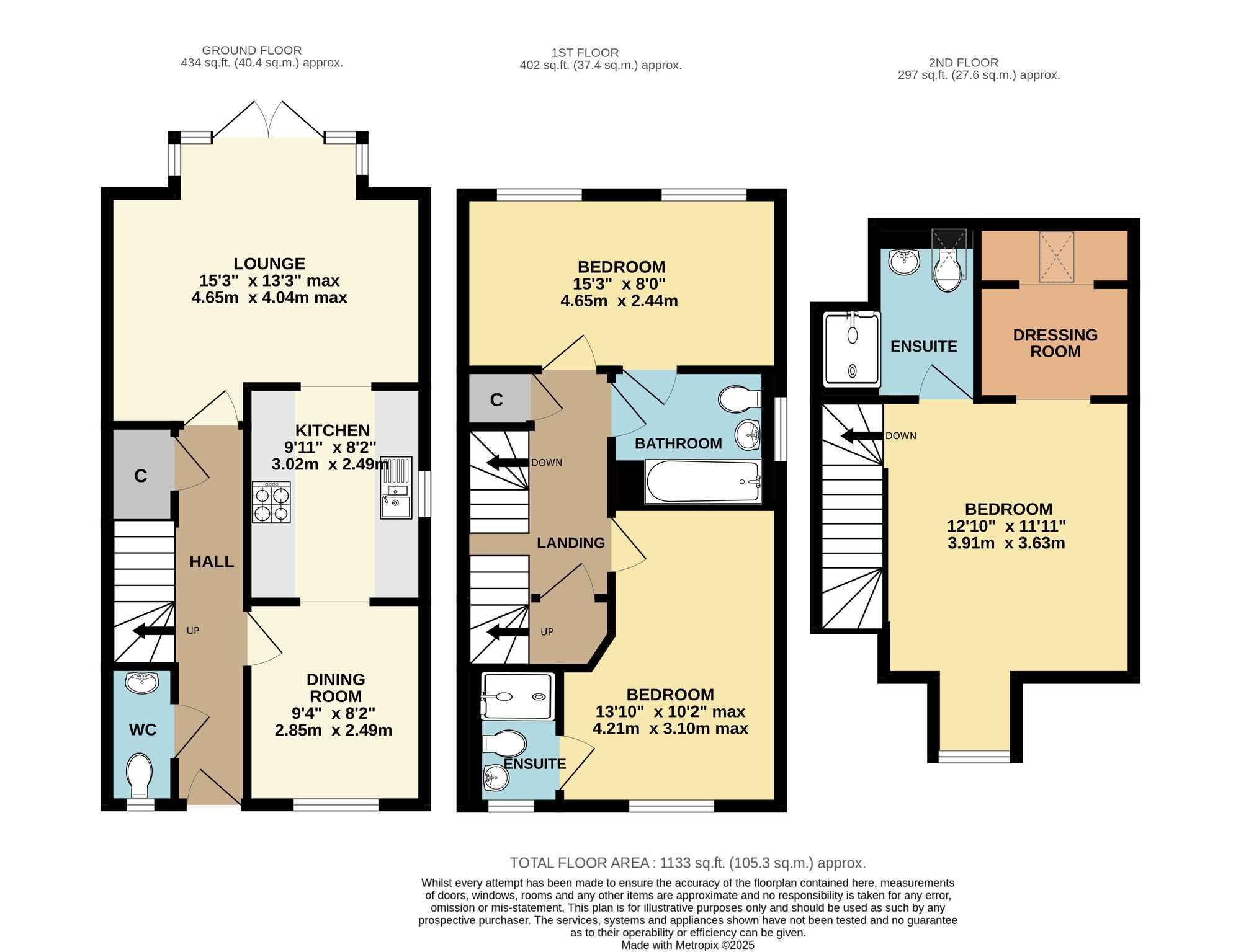 The spacious second bedroom has a window to the front and a modern en-suite with a shower cubicle, wash hand basin, WC and a window to the front. The third bedroom is also a good-sized double room and has two windows overlooking the rear garden, as well as a door to the ‘Jack & Jill’ bathroom.