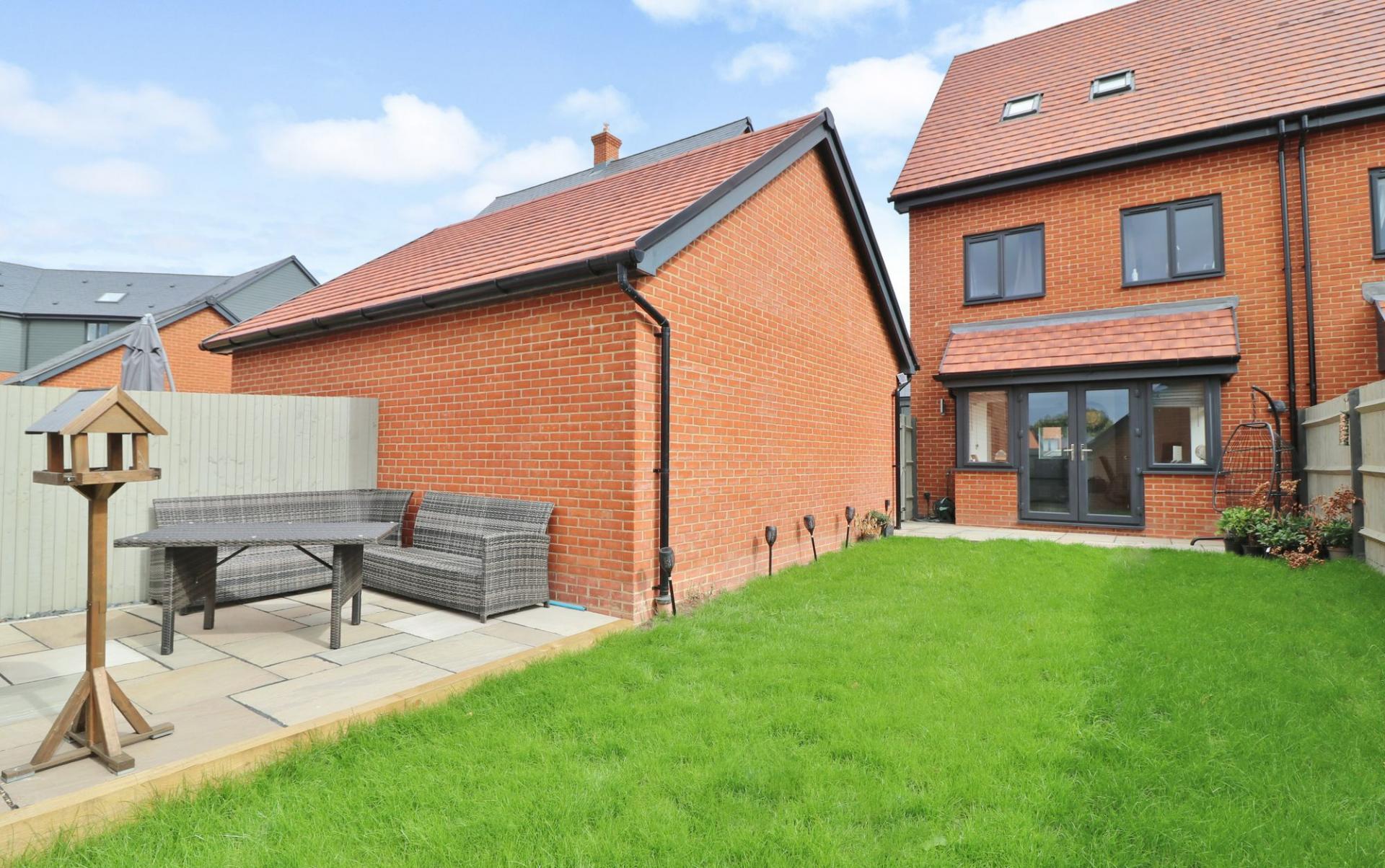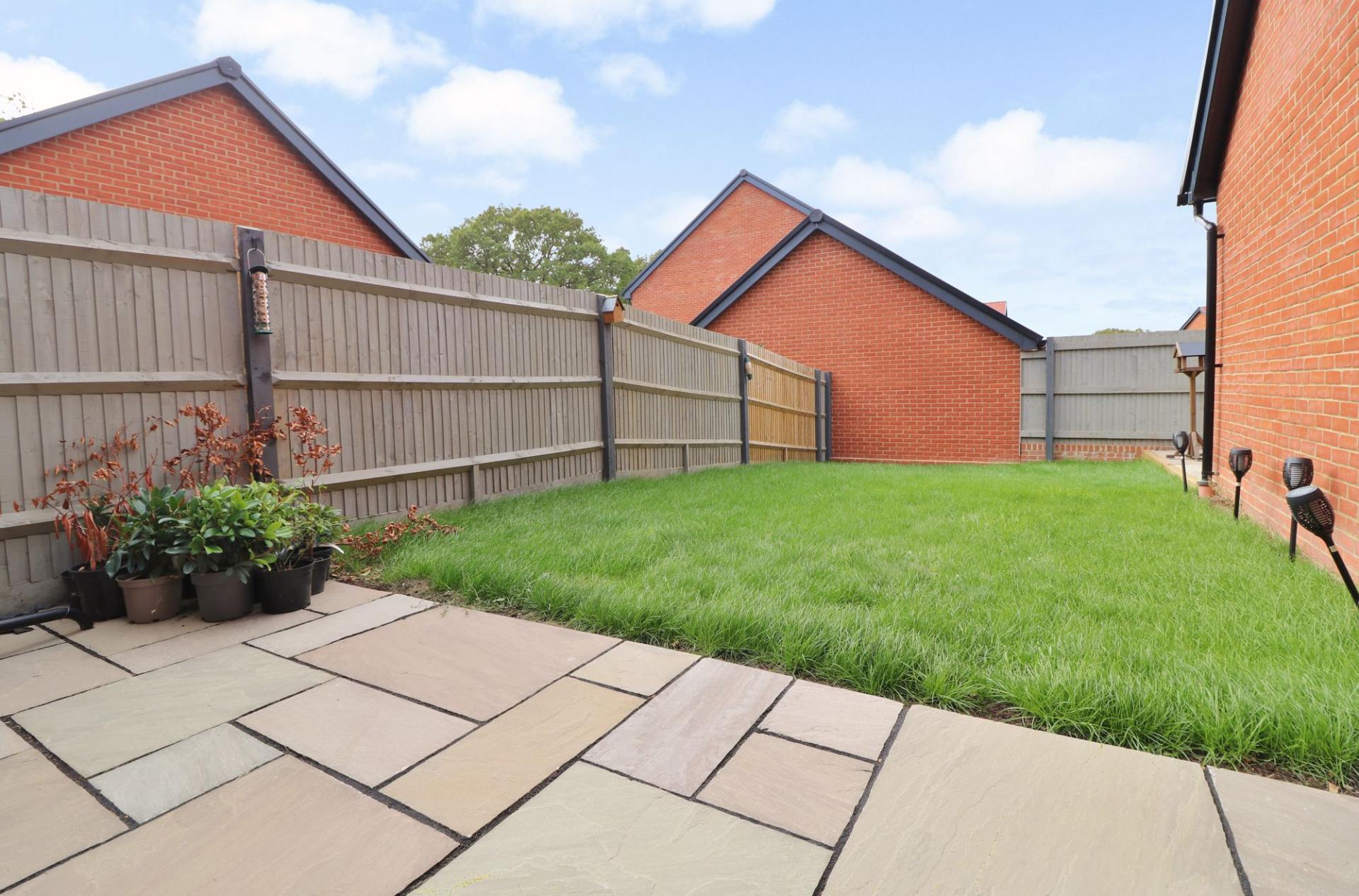 To the side there is driveway parking for two cars, leading to the single garage. Gated side access leads through to the attractive, landscaped rear garden which has a paved patio area, leaving the rest of the garden mainly laid to lawn and enjoying a further paved seating area to one corner.