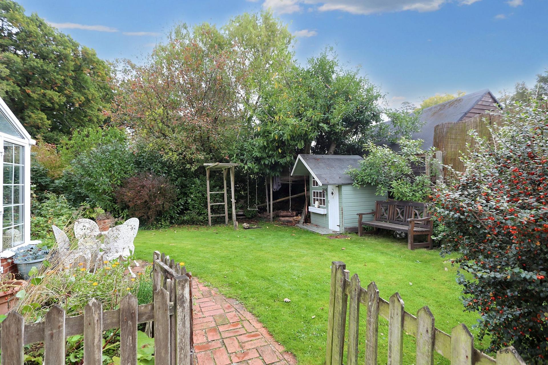Myrtle Cottage sits within mature, landscaped gardens that wrap around the home, creating a sense of privacy and calm. The outdoor spaces are thoughtfully arranged, with lawned areas, raised beds, and shaded seating spots to enjoy throughout the day. Hidden corners add charm and versatility, while practical touches, including two garden sheds, a large storage space, and a greenhouse, cater perfectly to gardeners and hobbyists.To the front and side, there is ample off-road parking for several vehicles, with the home approached via a private track, enhancing its sense of seclusion. Whether hosting summer gatherings, relaxing in the conservatory with the doors open, or simply enjoying the birdsong in the garden, Myrtle Cottage offers a rare and enchanting lifestyle in one of Hampshire’s most desirable rural settings.