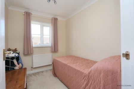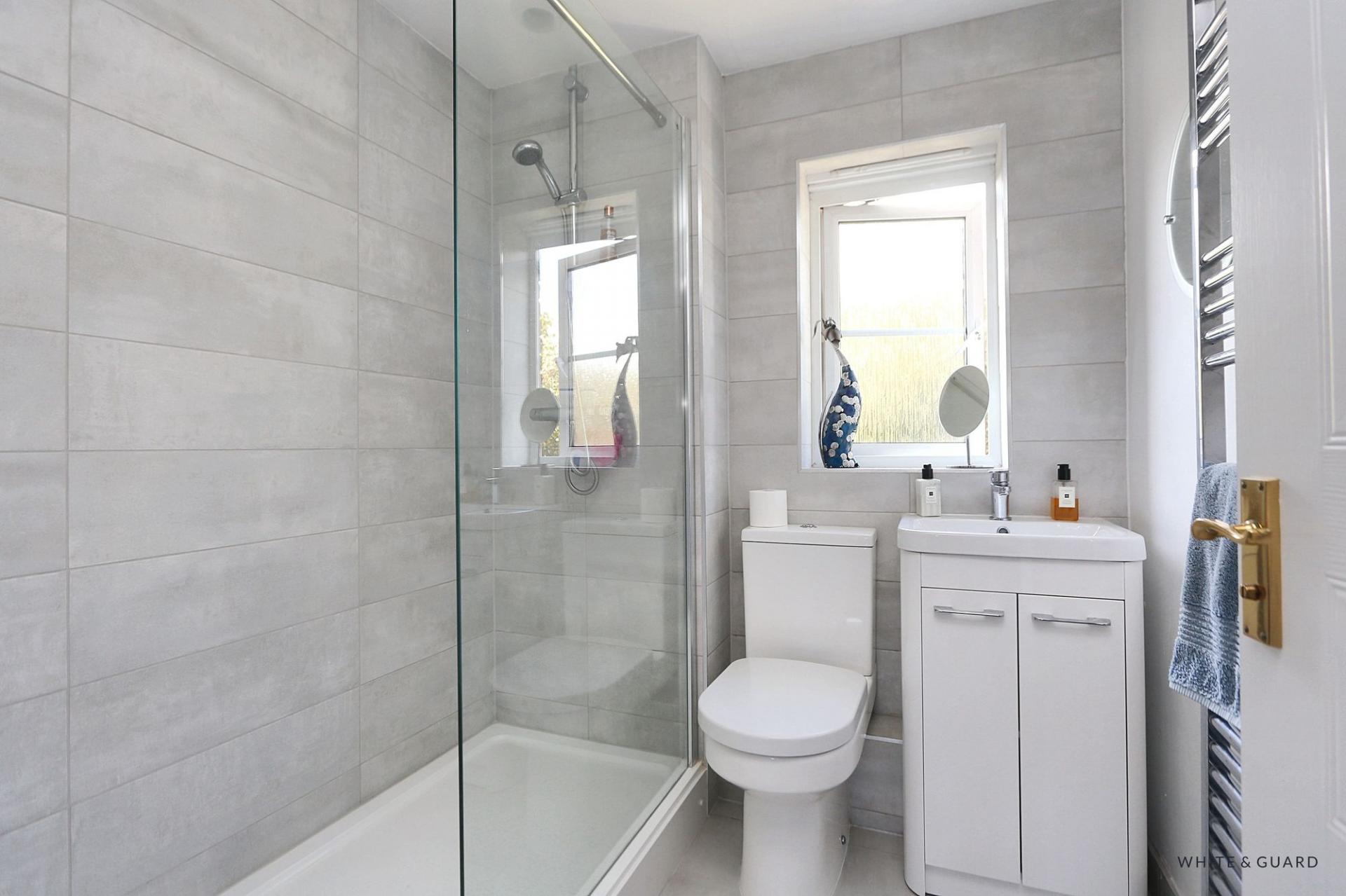Upstairs, three bedrooms provide versatility. The master has its own en-suite shower room, a private corner for the everyday luxury of getting ready in peace. The additional rooms could be children’s rooms, a guest space, or even a study for working from home. A family bathroom serves the rest, modern and simple.