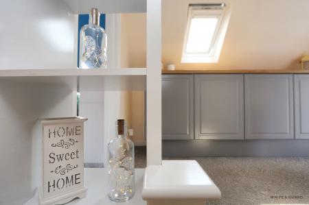 The first floor landing has a double glazed Velux window to the front elevation and benefits from a useful range of bespoke fitted storage units. Bedroom two, a good size double room overlooks the rear garden and provides useful storage options within the eaves. Bedroom three a dual aspect room has a feature balcony window to one side and presents as a generous sized single room. Both bedrooms are serviced by a stylish shower room which includes an enclosed shower cubicle, wash hand basin, WC and heated towel rail.