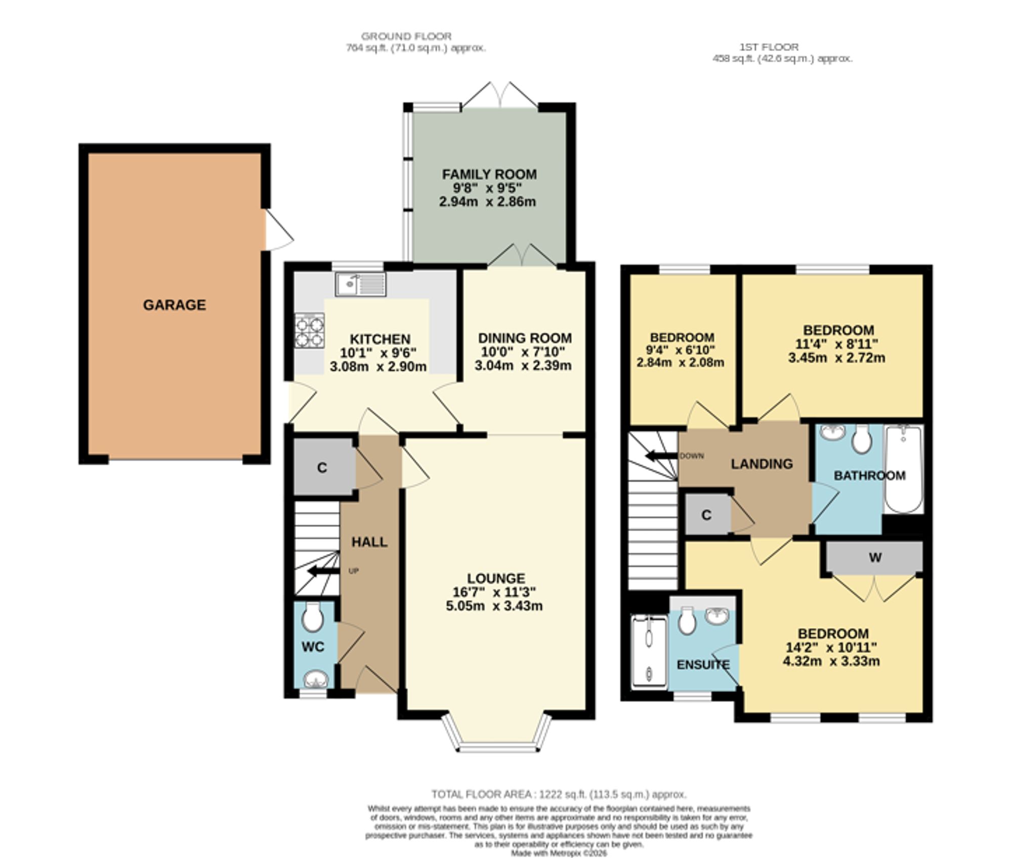 The ground floor comprises a generous lounge, separate dining room, modern fitted kitchen, a family room extension to the rear, and a WC.