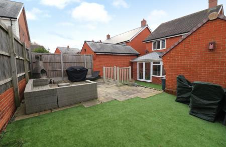 To the side there is driveway parking for two cars, leading to the detached, single garage. Gated side access leads round to the attractive rear garden, which has been landscaped and wraps behind the garage, offering sections of artificial lawn and a paved terrace at the end, perfect for outdoor entertaining.