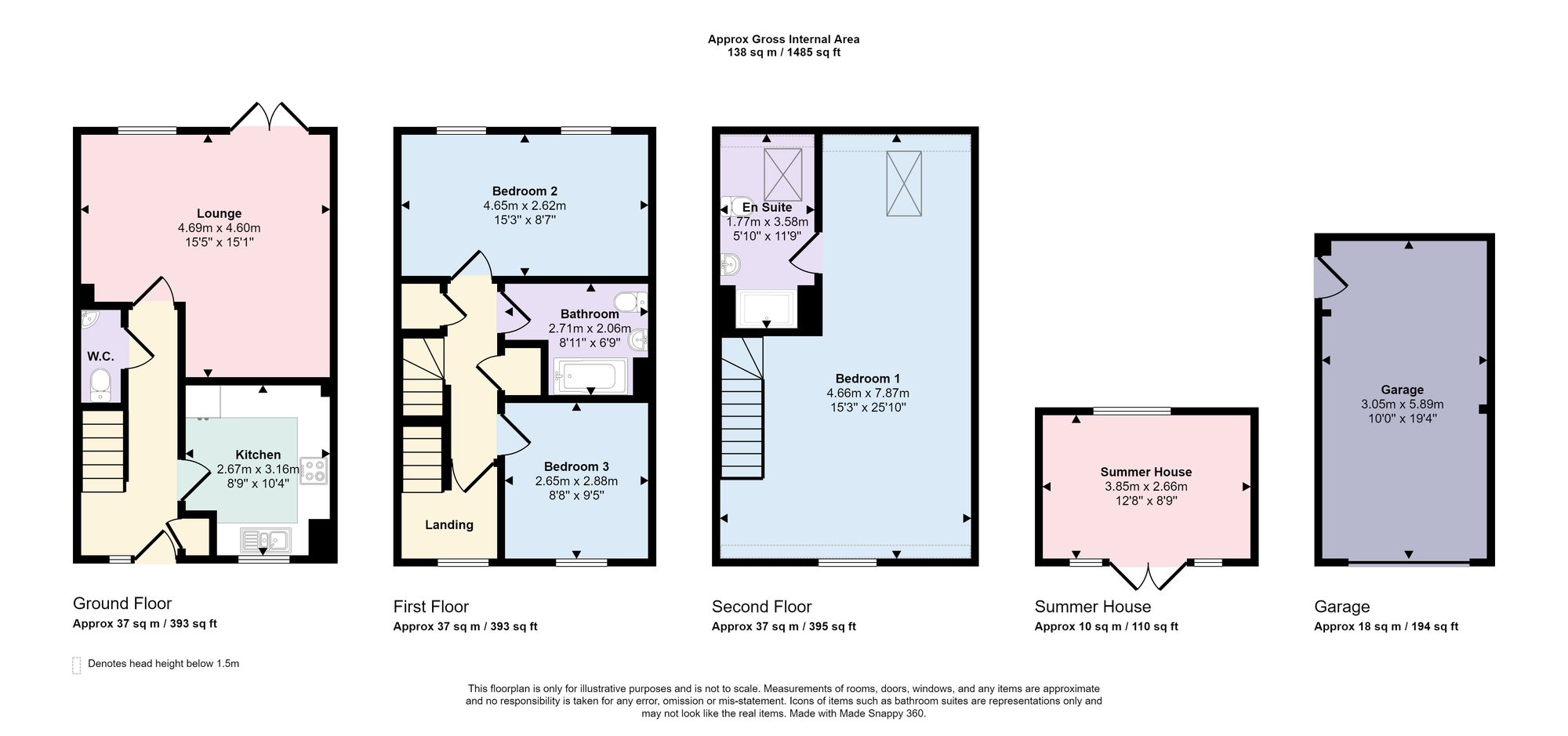 The front door opens into a well maintained entrance hall which has stairs leading to the first floor and a door to your left hand side leads through to a conveniently positioned cloakroom with WC, pedestal wash hand basin and radiator to one wall. Set at the front of the property is a well-appointed fitted kitchen which comprises a range of matching wall and base level work units with fitted work surfaces over which incorporate an inset stainless steel sink drainer and four ring gas hob with electric oven under. Further integrated appliances include a fridge freezer, dishwasher and washing machine. The kitchen also provides feature tiling to the principal areas and a wall mounted cupboard enclosing the central heating boiler. The principal living space is set at the rear of the house and double glazed French doors open onto the beautifully maintained garden. Across the first floor landing is a study area with stairs leading to the second floor and access is provided to bedrooms two and three which are both well proportioned double rooms. Servicing both bedrooms is the well maintained family bathroom, that comprises a panel enclosed bath with mains shower over and fitted shower screen, pedestal wash hand basin, WC, heated towel rail and tiling to the principal areas. The second floor hosts the impressive master suite, which offers a 25ft bedroom providing ample space for freestanding bedroom furniture and a dressing area. The adjoining en-suite has a double shower cubicle, WC, wash hand basin and heated towel rail.