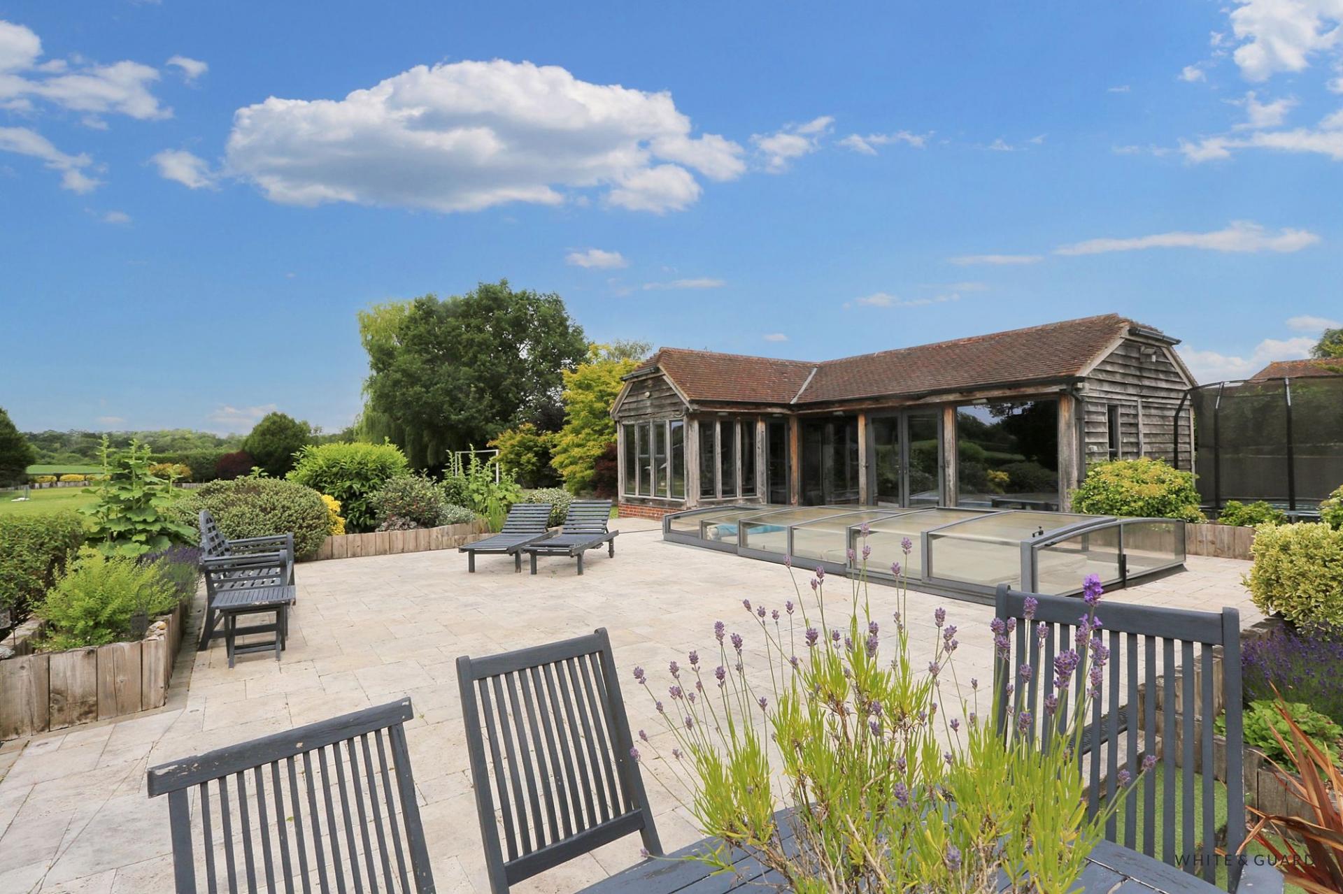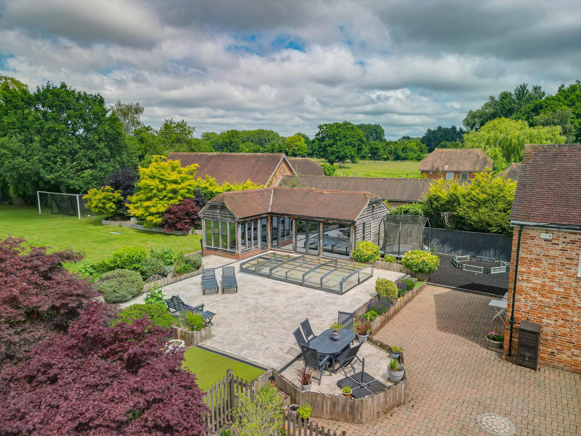 An exceptional Hampshire country residence with historical roots dating back to the 1700s. This former farmhouse has been transformed into an impressive estate offering nearly 5000 square feet of luxurious living space, situated on a sumptuous 1.5-acre plot. The property showcases a wealth of stunning accommodation which includes five bedrooms, three reception rooms, alongside a high specification kitchen dining room, while also offering ancillary accommodation in the form of self-contained annexe, offices, and a triple garage. The large plot accommodates a beautiful garden terrace overlooking the lawned grounds and rolling countryside, alongside a hydro swim spa and spa room with an inset hot tub.