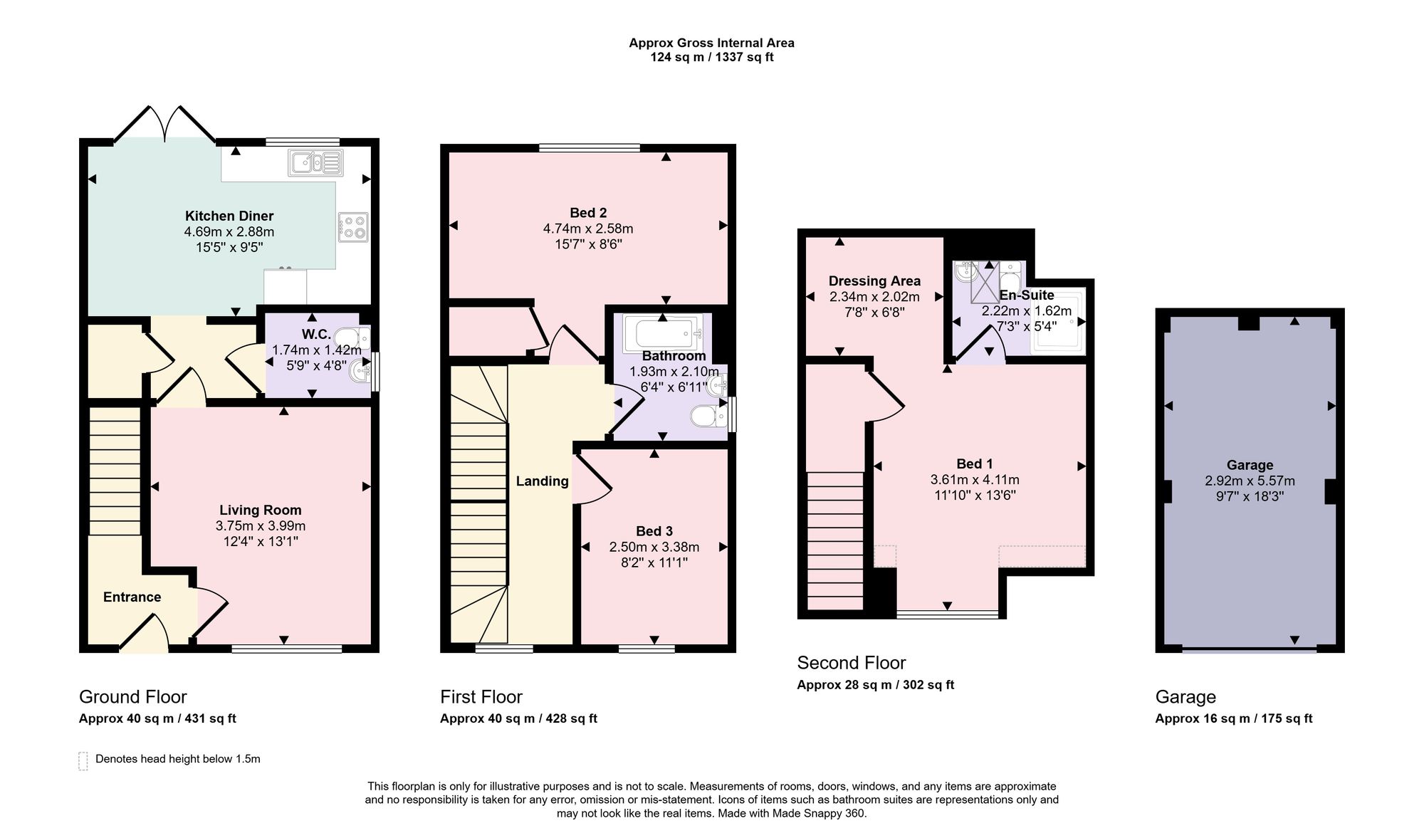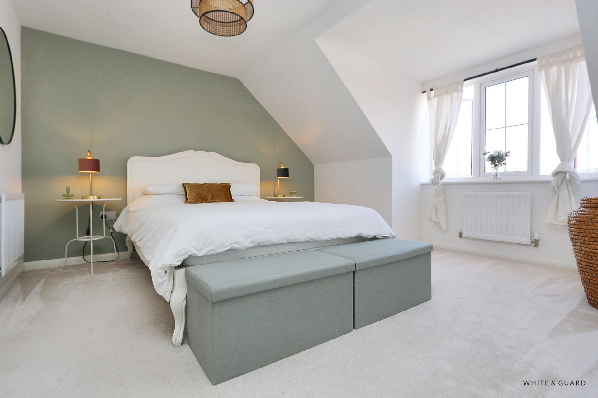 The first floor landing has a flight of stairs leading to the second floor and doors lead to the principal accommodation. Bedroom two, a substantial 15ft7 double room is found at the rear of the house and benefits from fitted storage, while bedroom three is a well-proportioned room allows space for freestanding bedroom furniture. Both bedrooms are serviced by a well appointed family bathroom, which comprises a panel enclosed bath with mains shower over, WC and pedestal wash hand basin. The master suite occupies all of the second floor, the impressive room has a dedicated dressing area with space for free standing furniture. An adjoining en-suite has an enclosed shower cubicle, WC, wash hand basin and tiling to the principal areas.