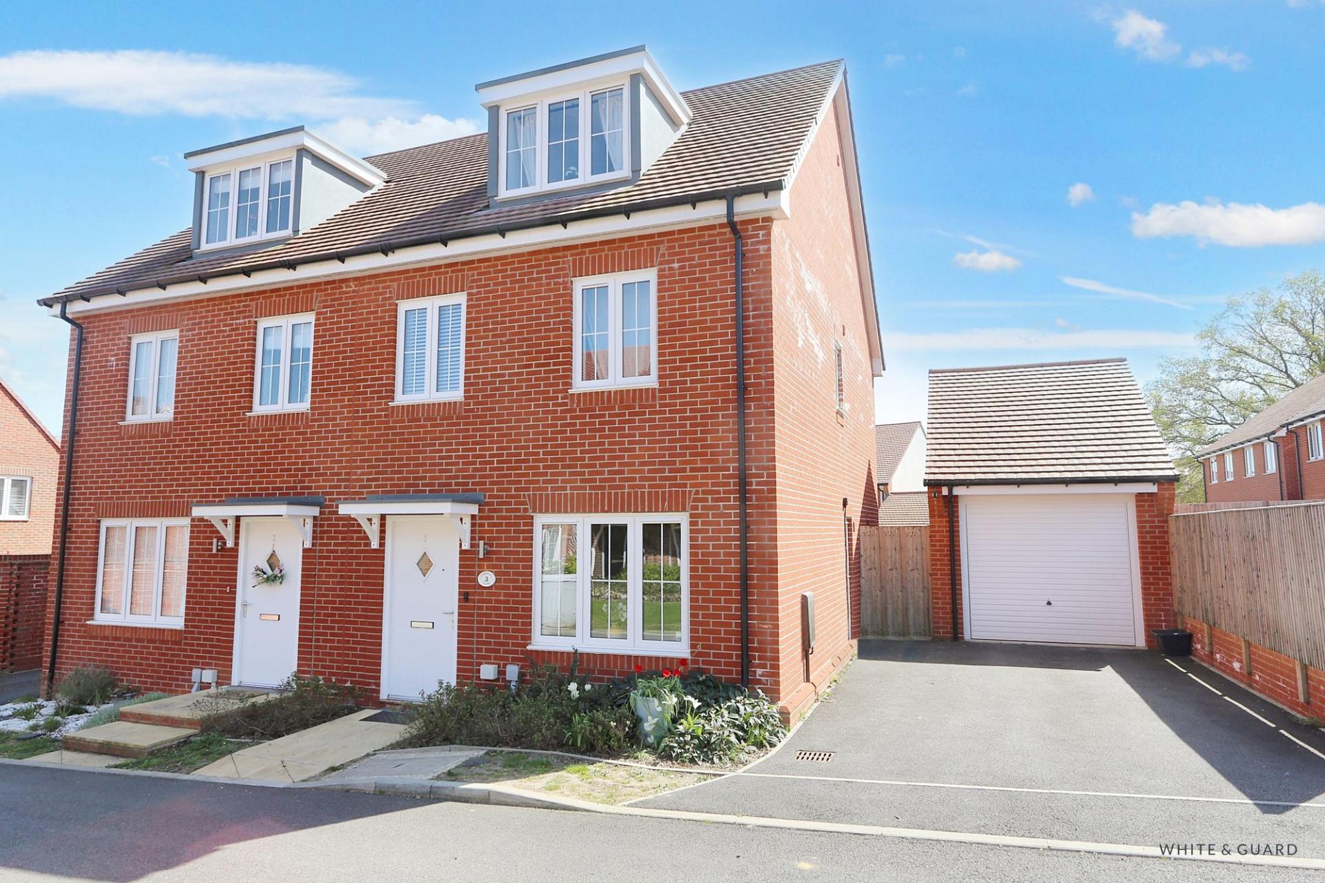 Immaculately presented and positioned in a quiet cul-de-sac, this stunning three bedroom semi-detached home showcases spacious accommodation set across three floors. The ground floor provides a well proportioned living room with a kitchen diner set across the rear of the property. The second and third floors offer three double bedrooms including a notable master bedroom with dressing area and en-suite. Externally there is a well maintained south facing garden, driveway and detached garage.