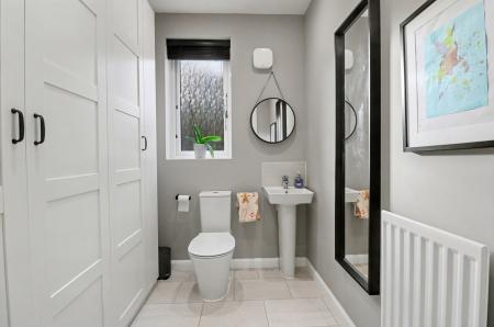 The utility/WC has a WC, wash hand basin, WC, a window to the side and fitted cupboards along one wall providing hidden space for a washing machine and tumble dryer.