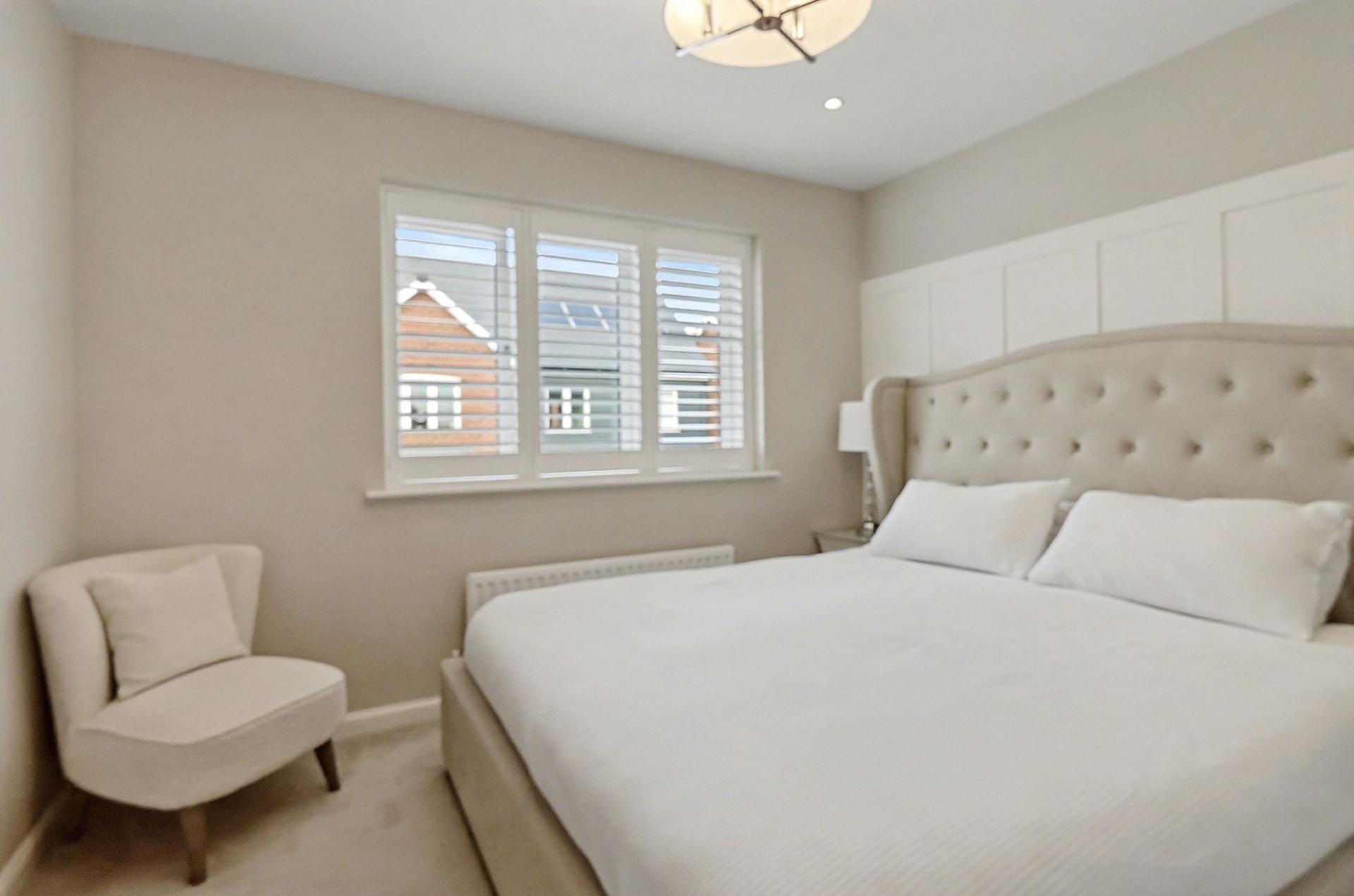 The good-sized master bedroom faces the front of the property and has a dressing area with fitted wardrobes. The modern en-suite comprises a shower cubicle, wash hand basin, WC and a window to the side.