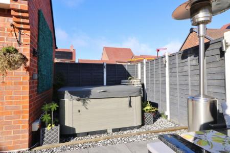 Gated side access leads round to the attractive, landscaped rear garden, which has a paved patio area, a section of artificial lawn and an additional seating area at the end with a designated space for a hot tub.