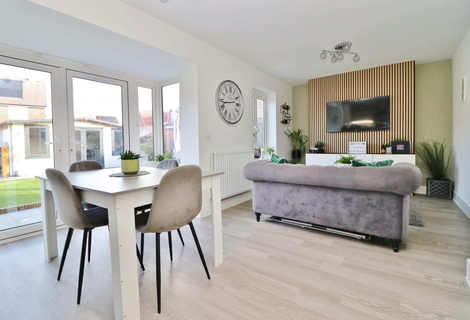 The heart of the home has to be the wonderful, open plan kitchen/diner/family room which offers generous living space with two windows to the rear, a door to the side and a bay with French doors leading out to the garden.
