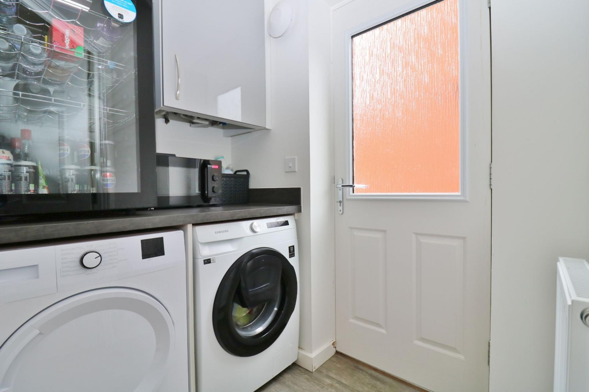 The adjoining utility room has a door to the side, fitted units and space for a washing machine and tumble dryer