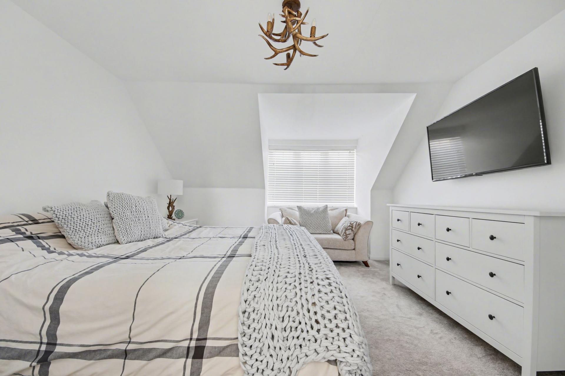 The upper floors provide generous bedroom accommodation, with the standout feature being the master suite occupying the second floor. This impressive space offers a sense of privacy and retreat, enhanced by a bright ensuite and a dedicated dressing area with built-in storage. The remaining rooms are well-proportioned and versatile, ideal for children, guests, or a home office.