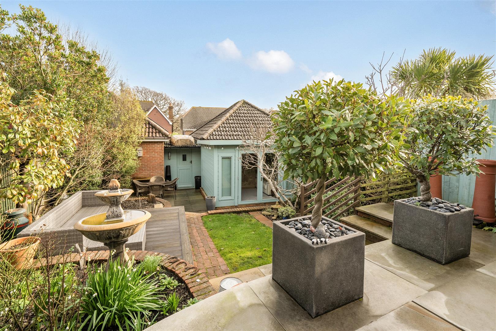 The house is positioned behind a mature beech hedge set back from the road and a pathway leads to a covered porch and the front door. On entering, the Kitchen leads off the Hallway and has been fitted with cream high gloss cupboards with granite worktops and a range of high specification appliances are included; at the far end there is a breakfast bar for informal dining. The Sitting Room is an elegant room with a built-in cupboard with shelving and features a beautiful open fireplace with a big hearth and mantle. Sliding doors lead from this room into a stunning Garden Room which is filled with light overlooking the garden and which also offers plenty of space for a dining table. A contemporary Cloakroom completes the ground floor. Upstairs are three bedrooms, two of which are doubles, Bedroom 1 has the benefit of extensive wardrobes as well as an ensuite Shower Room. The other two bedrooms are complimented by a Family Bathroom. A particular selling feature of this wonderful home is the back garden which has been landscaped with tiered terraces to enjoy the sunshine throughout the day and has been thoughtfully planted with beautiful flowering shrubs and specimen trees. At the rear of the garden is a large wooden Summerhouse and a path leads down to a big Store Room leading into the garage. There is also gated access down the side of the house.
